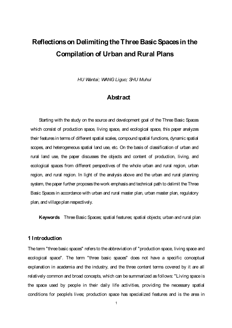 关键词 三生空间;空间特征;空间对象;城乡规划