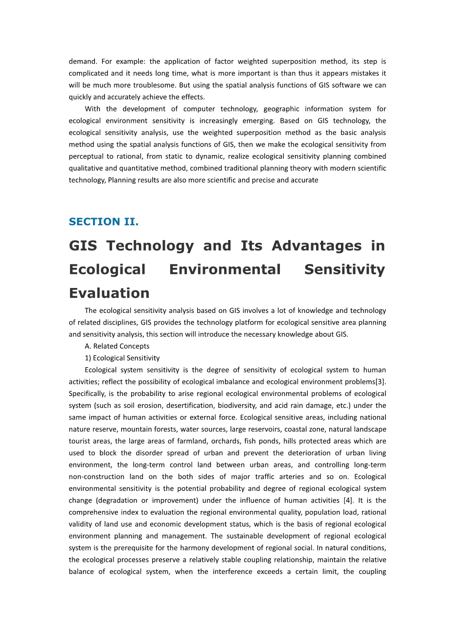 GIS的出现,特别是覆盖层的使用,使生态敏感性分析得到了极大的简化,使研究更加深入,分析评价技术更加成熟和精确。