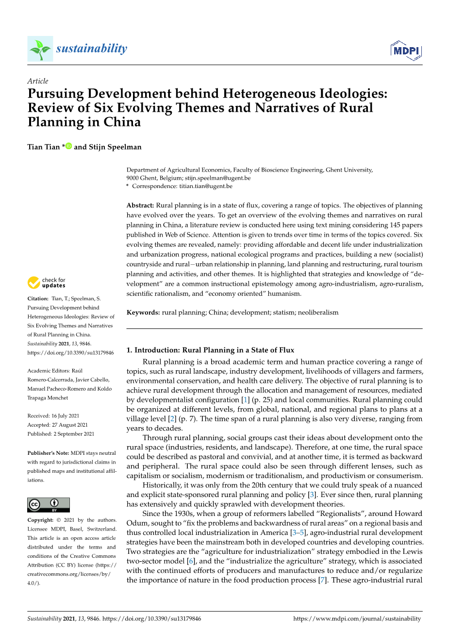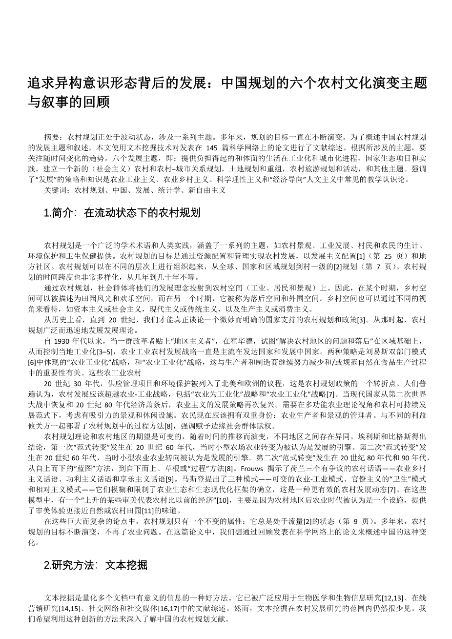 追求异构意识形态背后的发展:中国规划的六个农村文化演变主题与叙事的回顾外文翻译资料