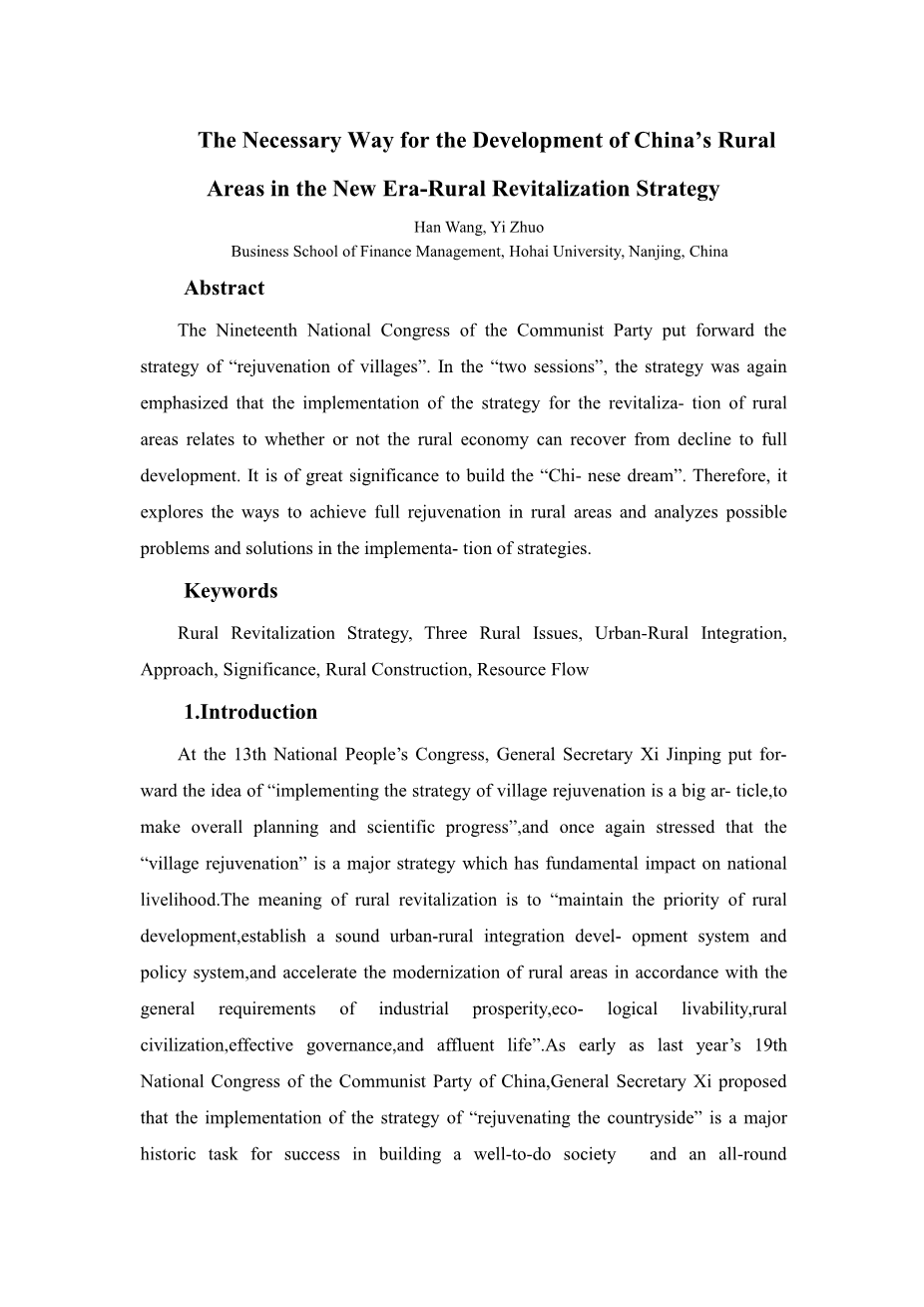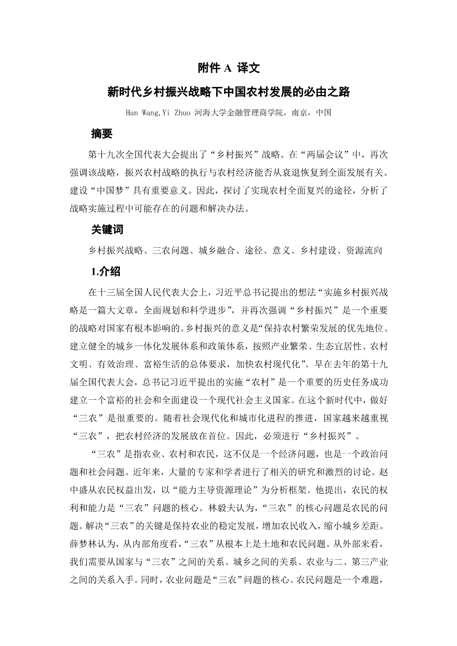 新时代乡村振兴战略下中国农村发展的必由之路外文翻译资料