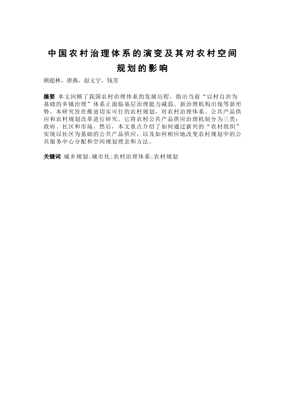 - 中国农村治理体系的演变及其对农村空间规划的影响外文翻译资料