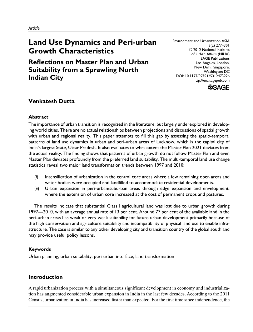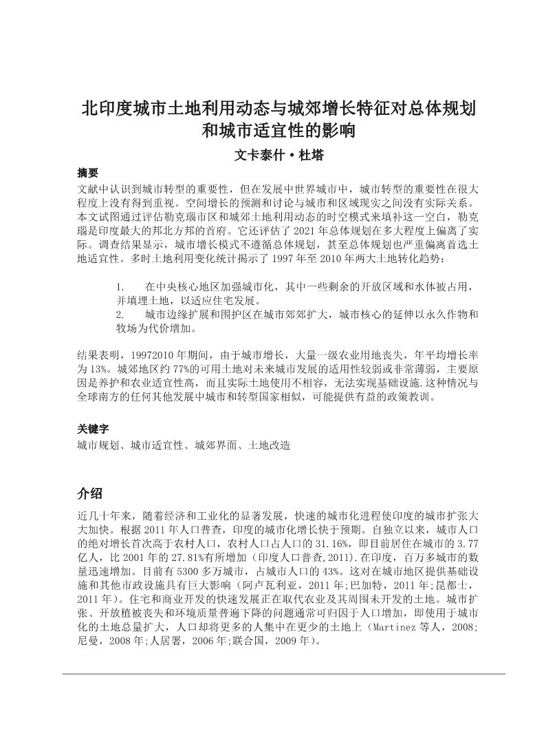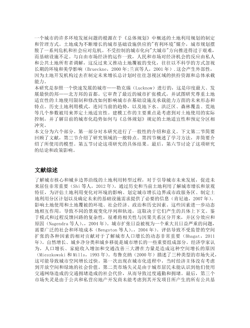 - 北印度城市土地利用动态与城郊增长特征对总体规划和城市适宜性的影响外文翻译资料