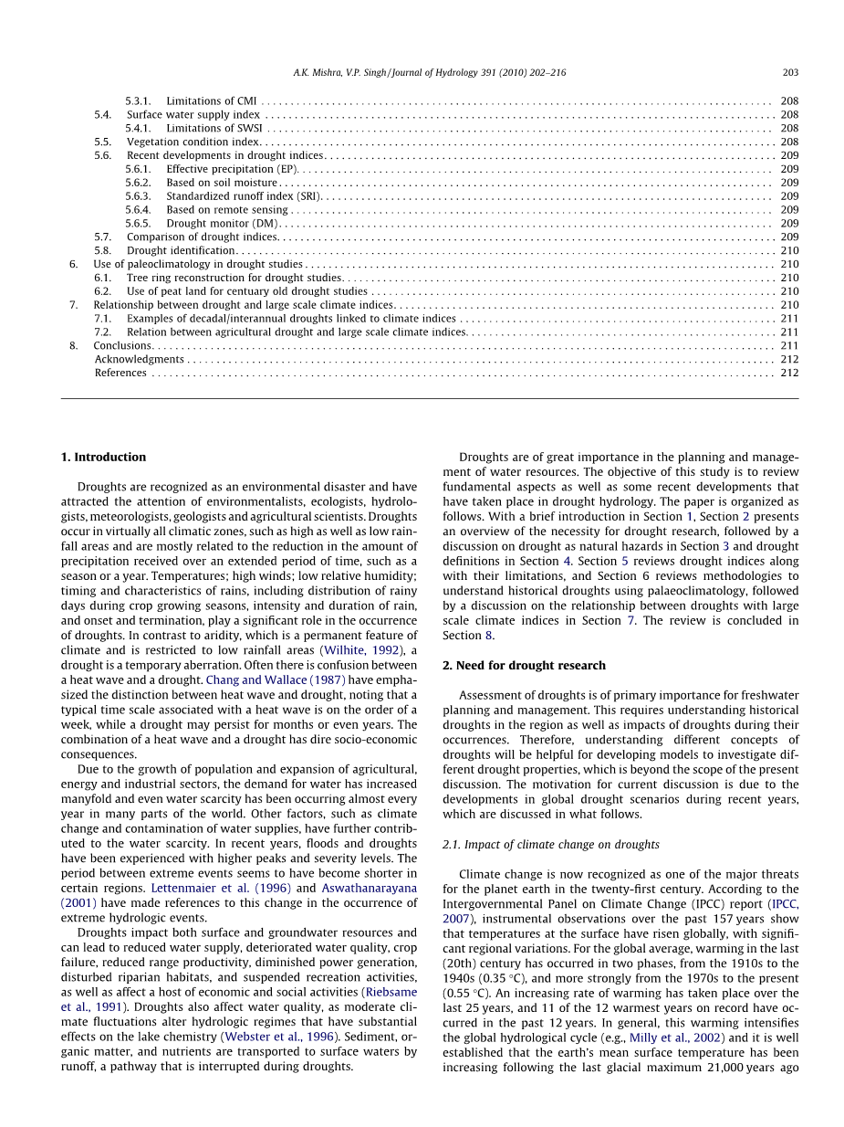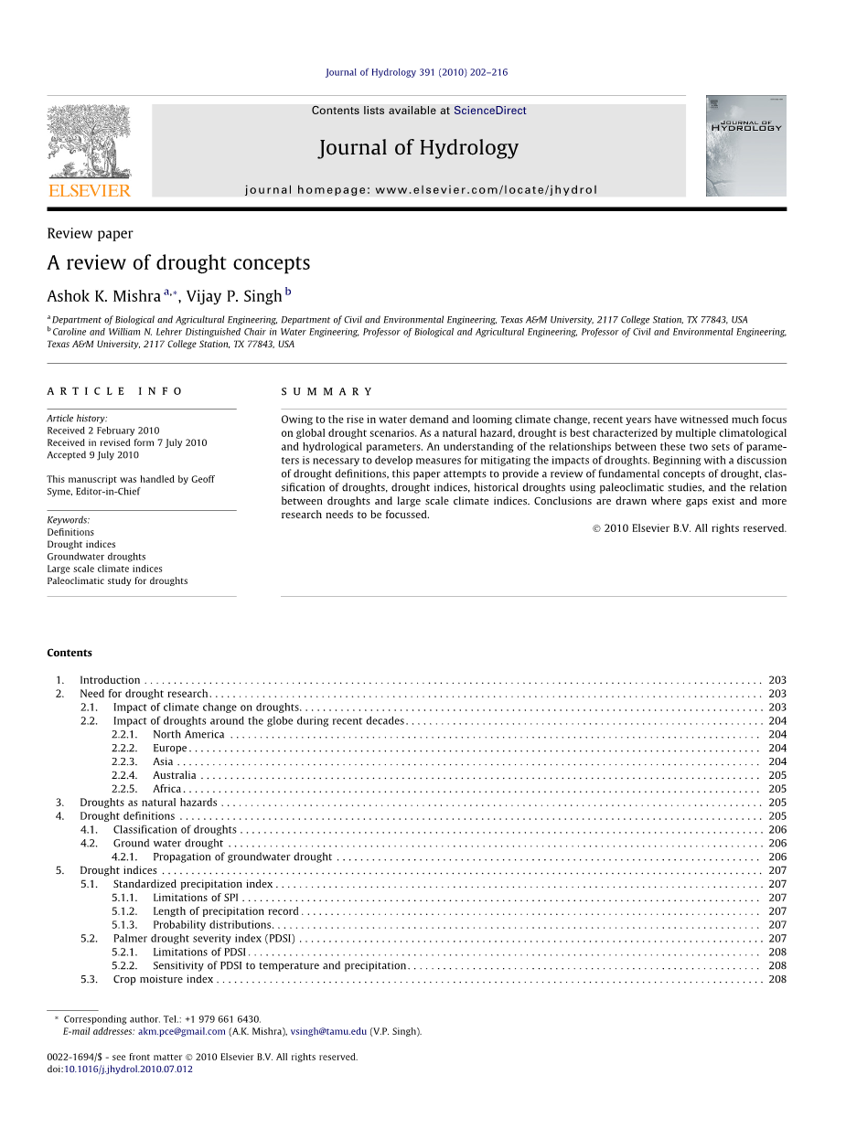 干旱对水资源的规划和管理至关重要。 这项研究的目的是回顾基本方面以及干旱水文学最近发生的一些事态发展。 论文组织为如下: 在第1节中作简要介绍,第2节概述了干旱研究的必要性,随后在第3节讨论了干旱作为自然灾害,第4节讨论了干旱定义。第5节回顾了干旱指数及其局限性, 第6节回顾了利用古气候学了解历史干旱的方法论,接着讨论了第7节中大尺度气候指数的干旱之间的关系。第8节总结了这一回顾。