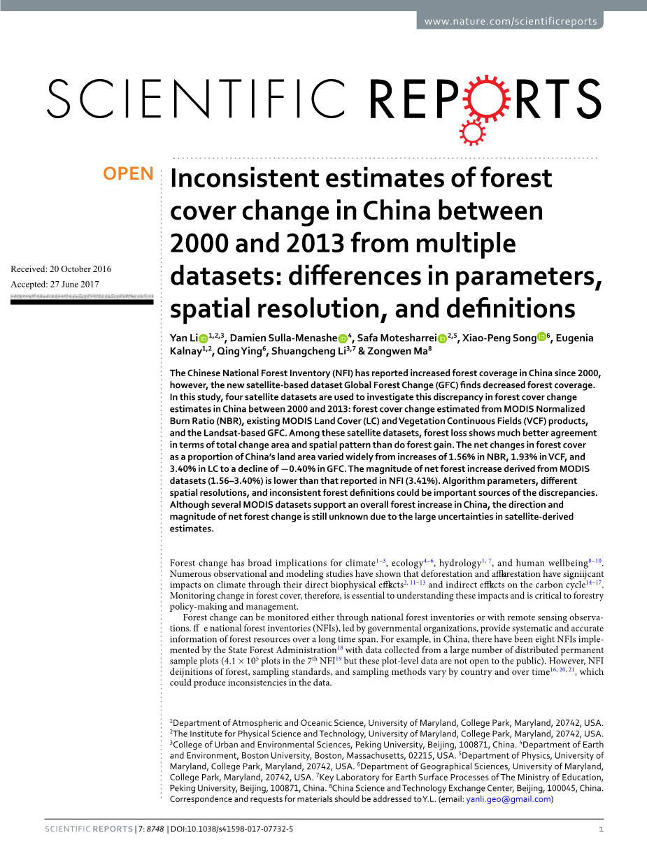 Yan Li1,2,3, Damien Sulla-Menashe4, Safa Motesharre2,5, Xiao-Peng Song6, Eugenia Kalnay1,2, Eugenia Kalnay1,2, Qing Ying6, Shuangcheng Li3,7 amp; Zongwen Ma8.