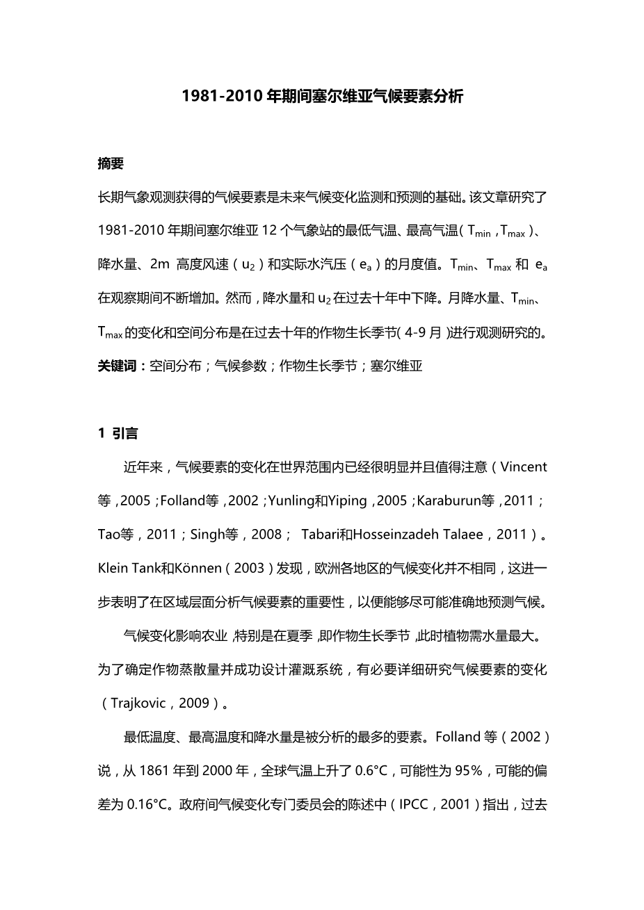 - 1981-2010年期间塞尔维亚气候要素分析外文翻译资料