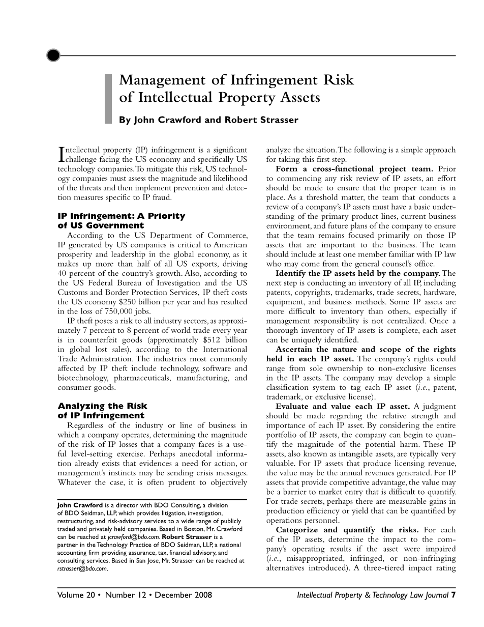 Regardless of the industry or line of business in which a company operates, determining the magnitude of the risk of IP losses that a company faces is a useful level-setting exercise. Perhaps anecdotal information already exists that evidences a need for action, or managementrsquo;s instincts may be sending crisis messages.Whatever the case, it is often prudent to objectively analyze the situation. The following is a simple approach for taking this first step.