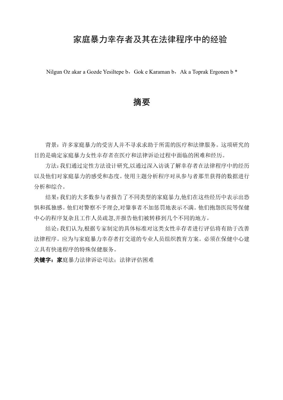 家庭暴力幸存者及其在法律程序中的经验外文翻译资料