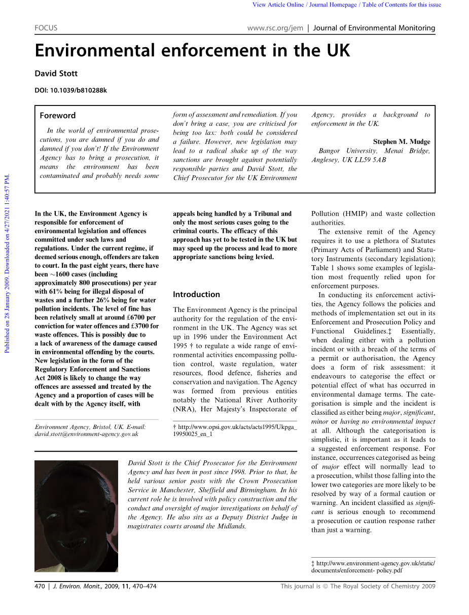 然而,他收到了一笔5.8万英镑的废料处理费,当局花了16.7万英镑进行清理,并将这些废料焚化,从而使罚款得以落实(2000年4月3日,沃里克刑事法庭)。然而,未来新的《环境损害(预防和补救)条例(2008年)》可能为法院提供一个机制,以确保污染材料被适当地移除,并确保任何损害得到“赔偿”。这样的差异导致了2005年议会环境小组委员会的审查,环保局为此提供了口头和书面证据;这一过程审查了环境犯罪和环境企业犯罪。调查之后又有两份报告。第一份是关于企业监管的汉普顿综述,从总体上审视了监管活动。第二份是由伦敦大学的Richard Macrory教授撰写的题为《监管正义:使制裁有效》的报告。这两份报告导致了2008年《监管执行和制裁法案》的通过,该法案授权立法并有能力深刻改变该局和其他监管机构的执法方式。Macrory报告的建议已为政府所接受,该报告的主旨是基于一个前提,即过分依赖起诉活动。相反,应该对最严重的蓄意、故意或严重疏忽的环境违法者进行起诉,如果违法者是由组织的疏忽或粗心行为造成的,而这些组织在某些情况下努力做他们最无能的事情,则应该使用其他形式的制裁。