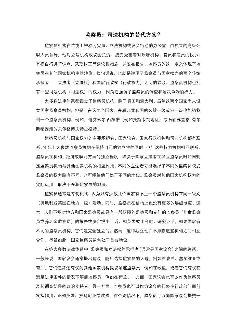 监察员:司法机构的代替方案外文翻译资料