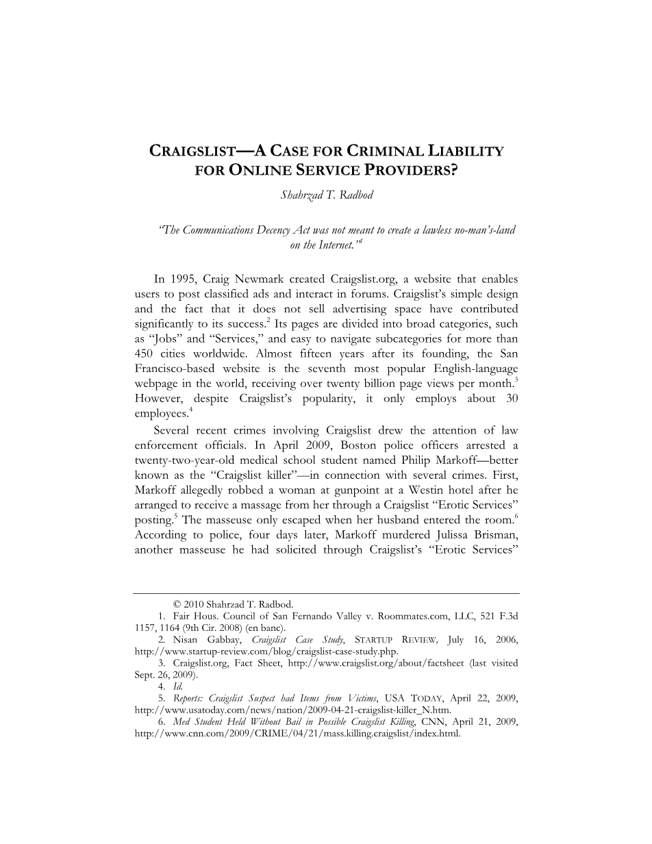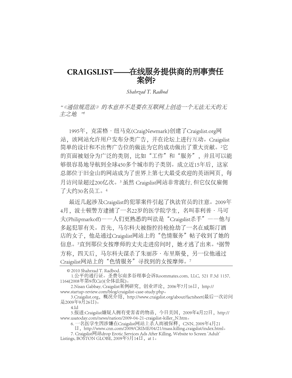 GRAIGSLIST–在线服务提供商的刑事责任案例外文翻译资料 2022-08-02 15:20:45 英语原文共 7 页,剩余内容已隐藏,支付完成后下载完整资料 英语译文共 7 页,剩余内容已隐藏,支付完成后下载完整资料 资料编号:[267126],资料为PDF文档或Word文档,PDF文档可免费转换为Word 原文和译文剩余内容已隐藏,您需要先支付 30元 才能查看原文和译文全部内容!立即支付 发小红书推广免费获取该资料资格。点击链接进入获取推广文案即可: Ai一键组稿 | 降AI率 | 降重复率 | 论文一键排版 PREVIOUS NEXT 您可能感兴趣的文章 试论消费者网购后悔权制度外文翻译资料 试论安全保障义务人补充责任外文翻译资料 论孤儿作品利用制度的完善外文翻译资料 租赁合同的历史外文翻译资料 区块链时代的电子证据:关于真实性和完整性的新规则外文翻译资料 辩诉交易、自白和刑事案件的协商解决外文翻译资料 云计算系统中的数字证据外文翻译资料 处于十字路口的英国法律援助系统外文翻译资料 案例分析 法学基础框架模型之错案责任调查制度外文翻译资料 谈判可以改变行政程序吗?外文翻译资料