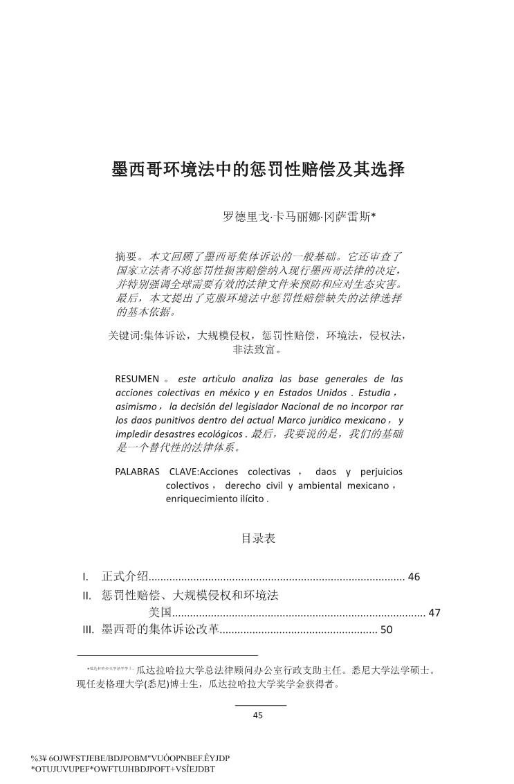 墨西哥环境法中的惩罚性赔偿及其选择外文翻译资料 2022-08-03 14:42:32 英语原文共 30 页,剩余内容已隐藏,支付完成后下载完整资料 英语译文共 20 页,剩余内容已隐藏,支付完成后下载完整资料 资料编号:[265822],资料为PDF文档或Word文档,PDF文档可免费转换为Word 原文和译文剩余内容已隐藏,您需要先支付 30元 才能查看原文和译文全部内容!立即支付 发小红书推广免费获取该资料资格。点击链接进入获取推广文案即可: Ai一键组稿 | 降AI率 | 降重复率 | 论文一键排版 PREVIOUS NEXT 您可能感兴趣的文章 试论消费者网购后悔权制度外文翻译资料 试论安全保障义务人补充责任外文翻译资料 论孤儿作品利用制度的完善外文翻译资料 租赁合同的历史外文翻译资料 区块链时代的电子证据:关于真实性和完整性的新规则外文翻译资料 辩诉交易、自白和刑事案件的协商解决外文翻译资料 云计算系统中的数字证据外文翻译资料 处于十字路口的英国法律援助系统外文翻译资料 案例分析 法学基础框架模型之错案责任调查制度外文翻译资料 谈判可以改变行政程序吗?外文翻译资料