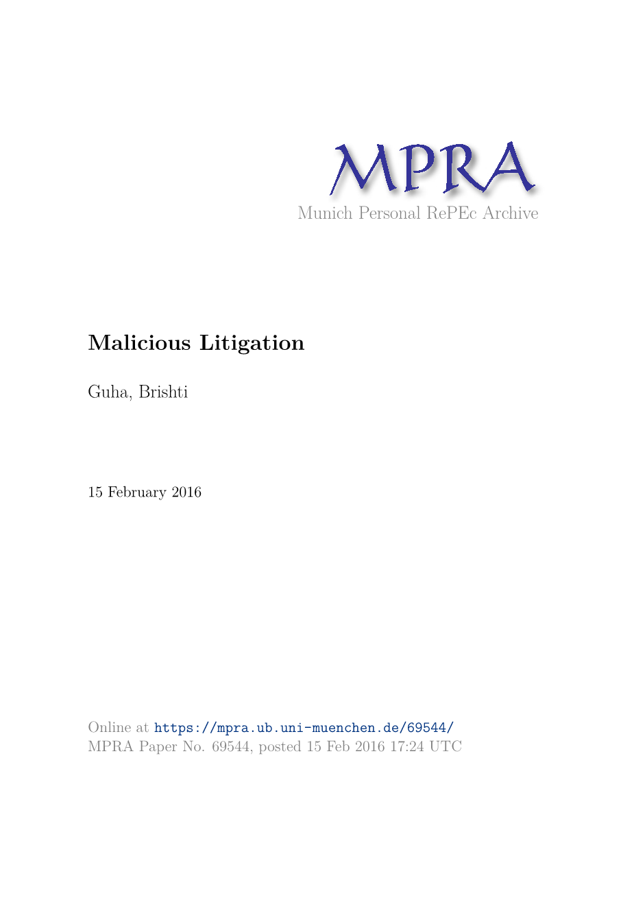 人们早就认识到,一些原告起诉被告是出于恶意,但此前在法律和经济文献中从未出现过恶意诉讼。我构建了一个简单的恶意诉讼模型,恶意被定义为原告在被告需要支付费用时获得某种效用。当原告是恶意的,他们更有可能提起不值得称道的诉讼;在原告的恶意中,提起诉讼的概率和原告的和解报酬都增加了。但是,如果被告也有恶意,在原告发生诉讼费用时获取效用,即使信息完整,也可能导致和解失败。在一定的参数范围内,双方恶意阻碍归档;在它之外,它提高了进入审判而不是通过和解解决案件的比例。相对于非恶意的“负预期价值”或“妨害”诉讼而言,赋予被告要求停止和解的权利,在阻止恶意诉讼方面效果较差。然而,将可选结算条与“承诺要求”相结合,规定只要被告选择辩护,原告就承诺出庭(而不是退出),可以在更大范围内阻止恶意诉讼。