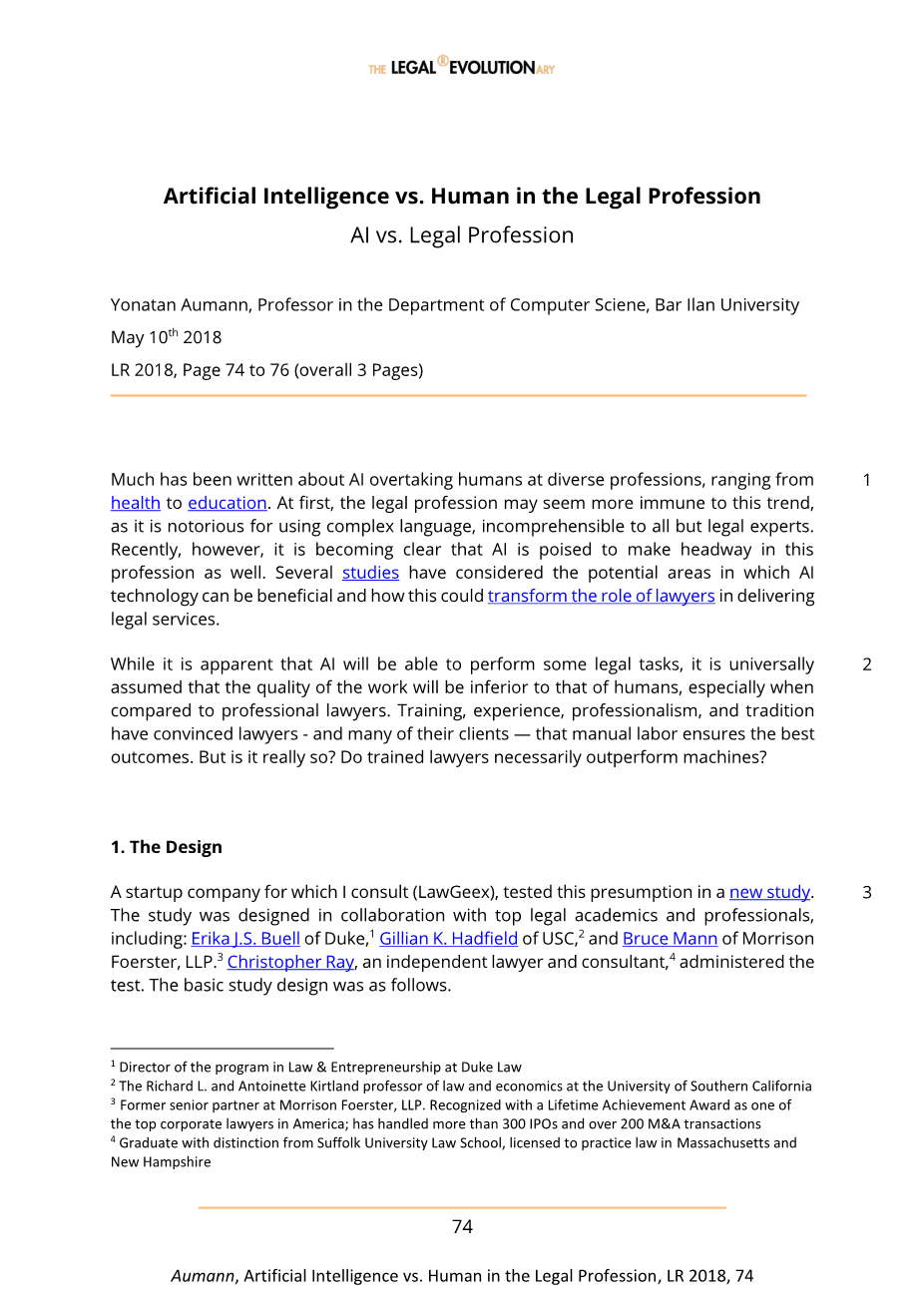 虽然很明显,AI 将能够执行一些法律任务,但假定工作质量将低于人类,特别是与专业律师相比。培训、经验、专业精神和传统使律师及其许多客户相信体力劳动能确保取得最佳效果。但情况确实如此吗?受过训练的律师必须比机器好吗?