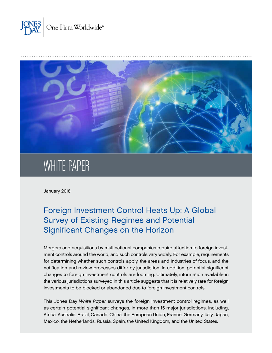 考虑到以上描述的外国投资管控制度的复杂性和多样性--并且还有外资管控领域潜在的重大变化,特别是在美国--即将发生这一系列的变化,跨国公司在从事并购和收购活动时应该密切关注全世界的外资管控制度。