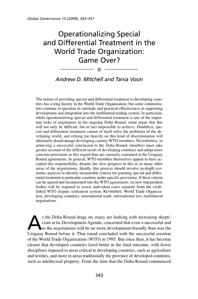 (Written by Andrew D. Mitchell and Tania Voon, published on Global Governance, 2009,15(3): 343-357.)