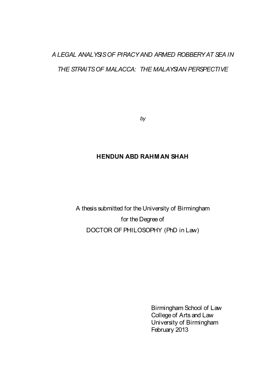 本论文主要涉及文献的定性研究,以往图书馆的文献与网络资源研究,联合国的文件和正式文件,IMB、 IMO和年度报告,马来西亚政府对海上的海盗和武装抢劫的文件。除了法律分析,历史的观点也被用来充分理解法律在上下文中概念,确定其在当前形势下的充分性和相关性。本论文的重点是从马来西亚的角度看马六甲海峡的海盗和武装抢劫案,与马来西亚政府官员和国家海事机构的代表,包括国家安全委员会总理部门的几次采访会,马来西亚皇家海军(RMN),马来西亚海事执法局(MMEA)人员,检察长办公室的检察官等在马来西亚也发表了对政府政策的非官方的看法,以支持本论文的论点,并在这一问题上确定自己的立场。本文研究的状态,个体的合作力度,尤其是马来西亚,在打击海盗及持械抢劫船只,以确定当前的油料是否充足在处理两岸对船只的海盗和武装抢劫案。它还探讨和分析了合作措施,涉及沿海国家和利益相关者,减少海盗和武装抢劫事件,在吨的测量,在吨国际海事局海盗报告中心的统计数据。
