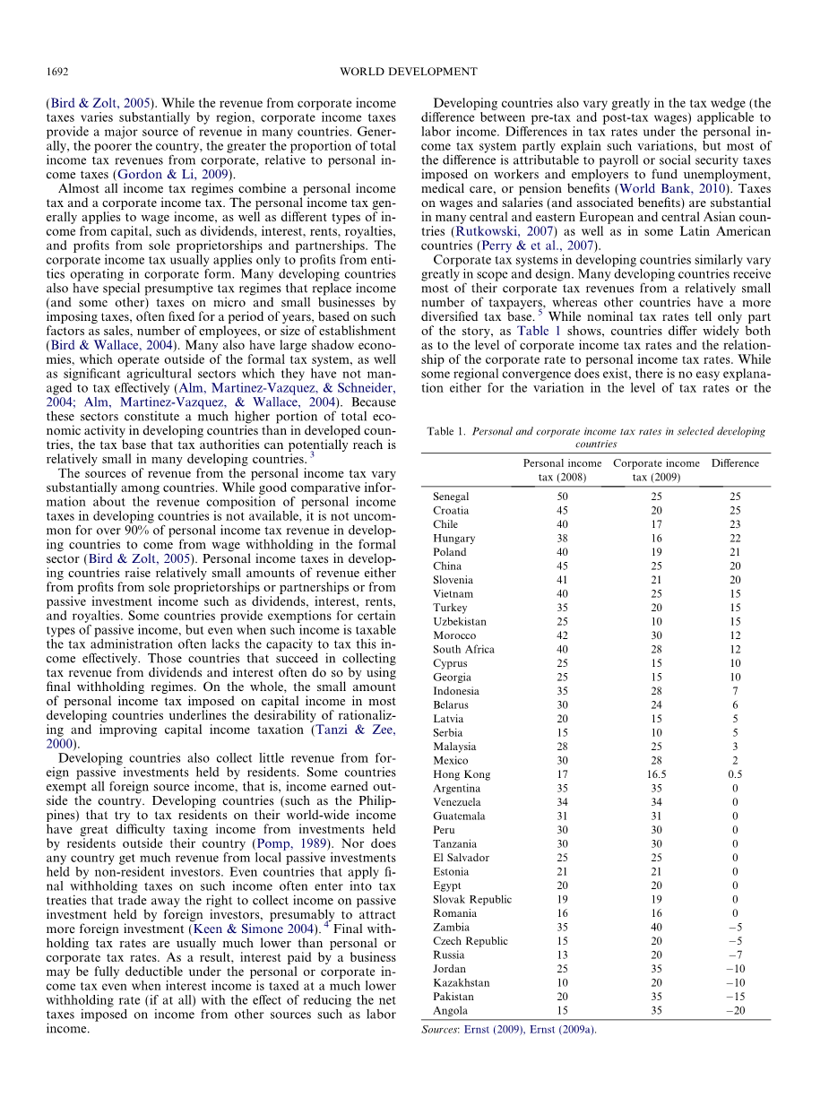 表1在被选定的发展中国家的个人和企业所得税税率