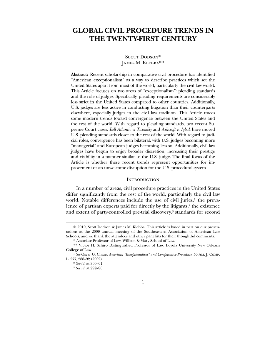 本文通过传统的“美国例外论”两个方面的视角来解决这些问题:诉讼标准和法官的角色。在这两个领域,美国和外国系统之间出现了一些趋同。关于请求,无论发生什么样的行动只是朝着一个方向进行,美国法院单方面采取更严格的诉状要求。关于法官的作用,双方都有变化,但大陆法系国家之间仍然存在重大差异。尽管如此,至少有一些美国法官正在更多地参与民事诉讼的管理工作,一些大陆法系国家已经放弃了更多的诉讼双方律师的控制。