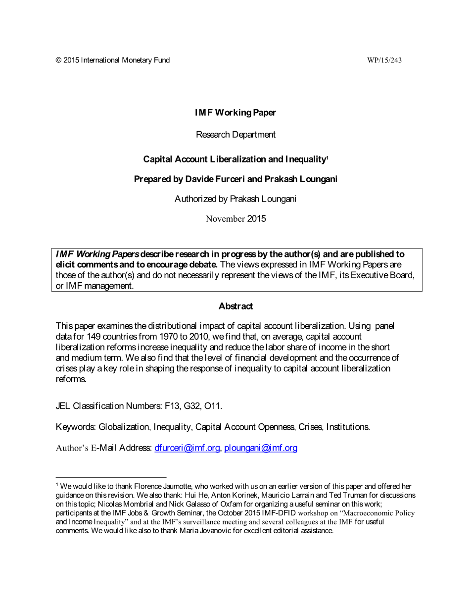 关键词:全球化,不平等,资本账户开放,危机,制度