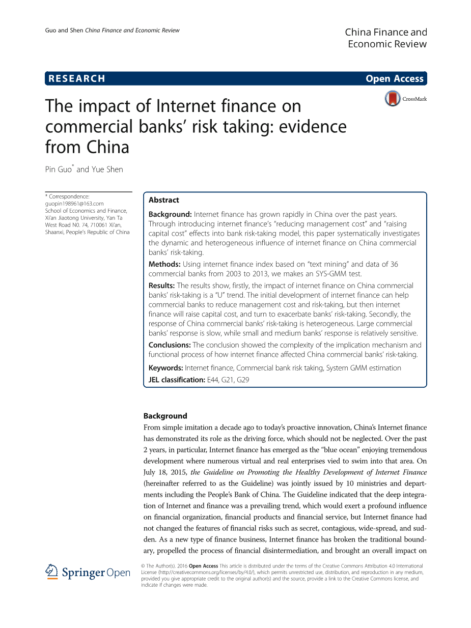 从目前情况看,中国互联网金融发展的历程可以分为三个阶段,即从传统金融服务的互联网延伸作为第一阶段,互联网支付作为第二阶段的蓬勃发展,互联网信用和互联网金钱管理的出现是第三位。 与英美等发达国家相比,中国互联网金融还处于起步阶段。 但其发展速度超过预期,这关系到中国的金融体制改革。 麦金农(1973) 和肖(1973) 指出经济转型国家一直存在金融抑制。 Xun和Johansson(2013) 还认为,长期以来,中国银行业出现了严重的金融抑制现象 - 进入壁垒越高,阻碍了潜在的竞争对手,严厉的利率管制降低了对商业没有推动力的存款成本享有“垄断奖金”和“价格”的银行奖金“转移技术,降低成本,提高效率。 在这种情况下,涌现出的突飞猛进的互联网金融,给商业银行带来了深远的影响。