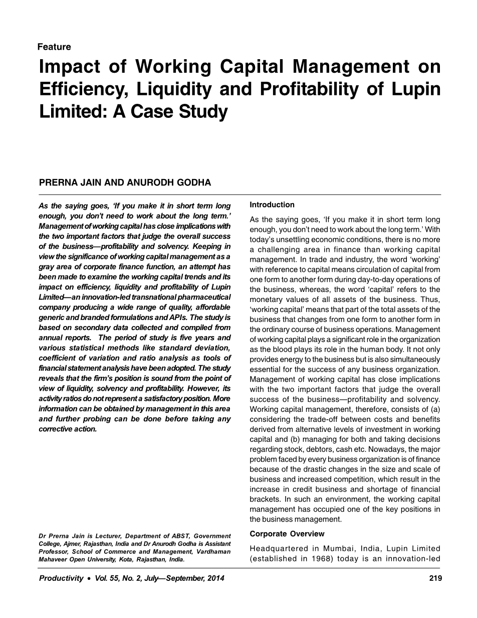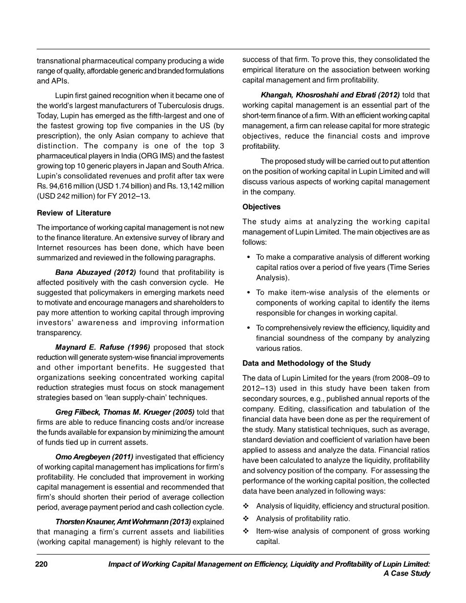 营运资本管理对印度鲁宾有限公司效率、流动性和盈利能力的影响:个案研究