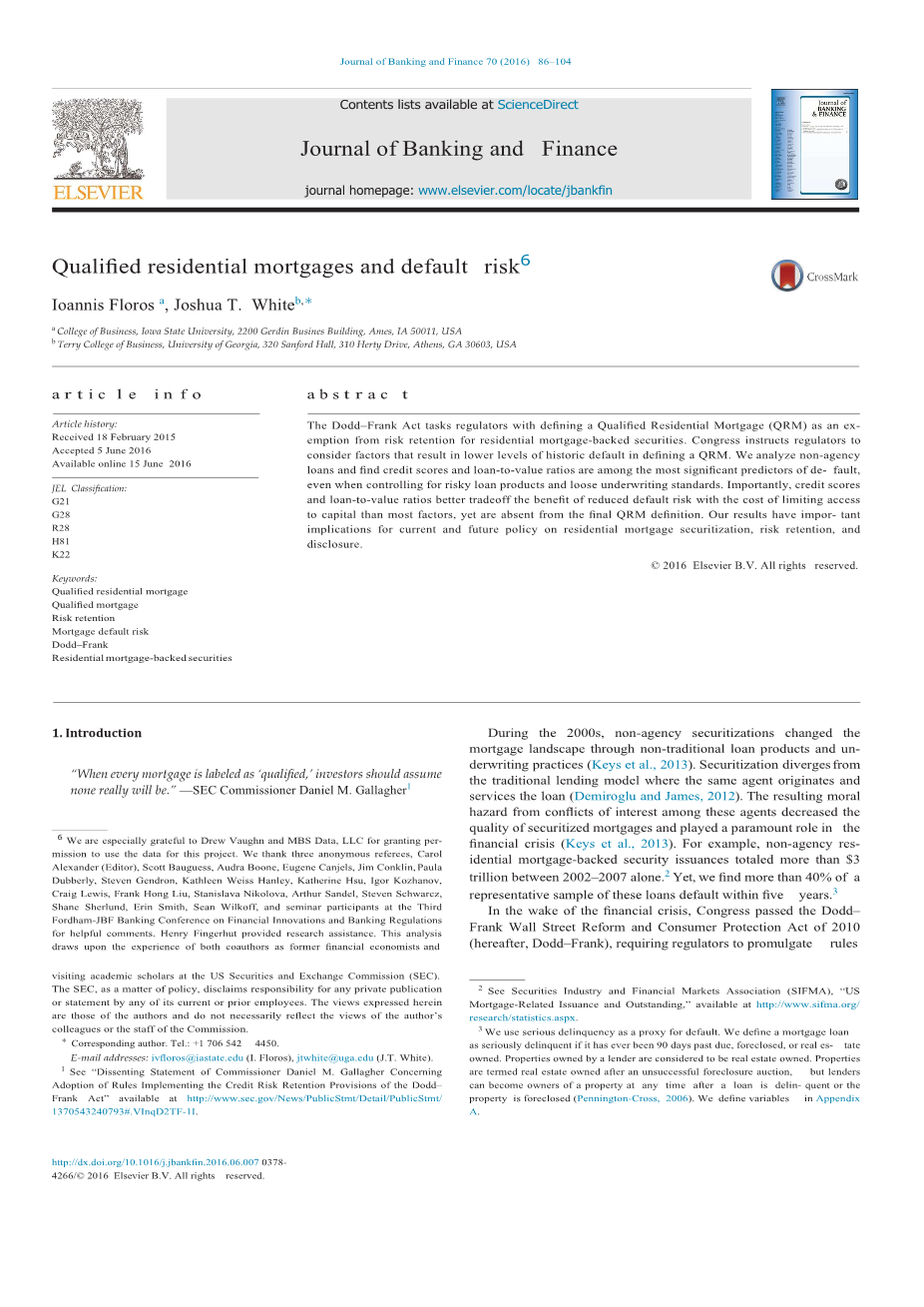 关键字:合格住宅抵押贷款 合格的抵押贷款 风险保留 按揭违约风险 多德-弗兰克 住宅按揭抵押证券