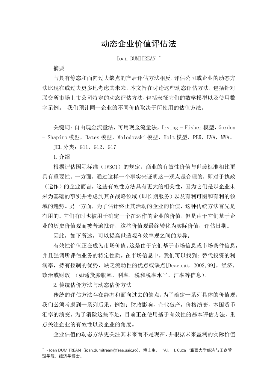 基于EVA的证券上市公司价值评估研究外文翻译资料 2022-07-06 16:57:18 英语原文共 17 页,剩余内容已隐藏,支付完成后下载完整资料 英语原文共 8 页,剩余内容已隐藏,支付完成后下载完整资料资料编号:[10236],资料为PDF文档或Word文档,PDF文档可免费转换为Word 原文和译文剩余内容已隐藏,您需要先支付 30元 才能查看原文和译文全部内容!立即支付 发小红书推广免费获取该资料资格。点击链接进入获取推广文案即可: Ai一键组稿 | 降AI率 | 降重复率 | 论文一键排版 PREVIOUS NEXT 您可能感兴趣的文章 哈佛分析框架下的企业经营管理分析:以迪斯尼公司为例外文翻译资料 某些财务指标对罗马尼亚能源部门股本回报率的影响——基于Dupont分析的竞争方法外文翻译资料 企业并购中的金融风险控制与规避措施外文翻译资料 马来西亚公司的企业风险管理做法外文翻译资料 伊斯兰金融机制下的中小企业融资困境分析——以苏丹伊斯兰银行为例外文翻译资料 塞尔维亚肉类行业盈利能力分析外文翻译资料 现金流量表与企业价值:来自台湾的证据外文翻译资料 企业价值最大化视角下的财务风险控制与防范研究外文翻译资料 财务报表舞弊的原因、后果及防范外文翻译资料 澳大利亚借壳上市:探索性分析外文翻译资料