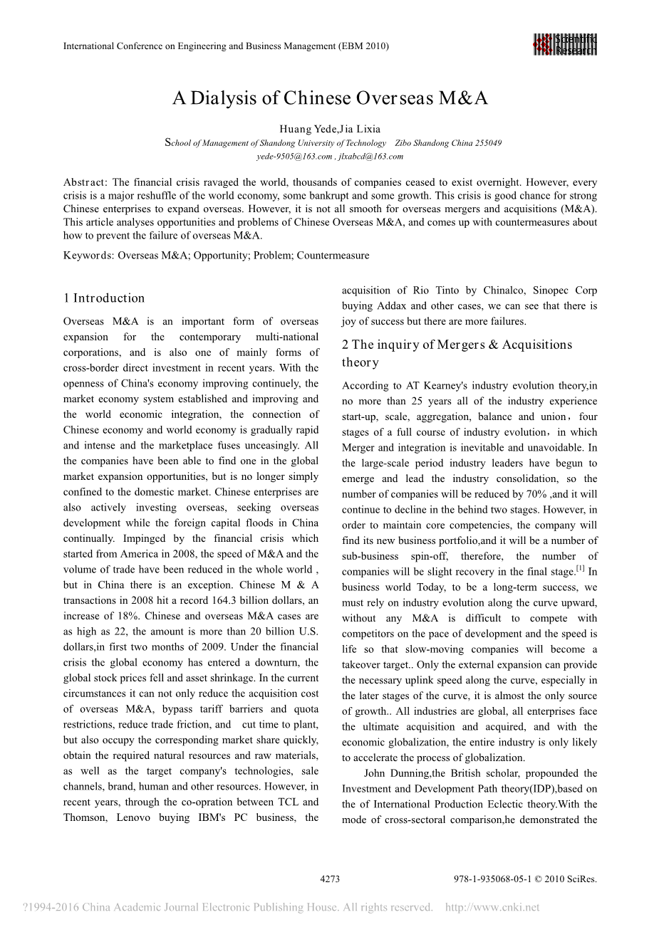 摘要:金融危机肆虐全球,数千家公司一夜之间不复存在。然而,每一次危机都是世界经济的一次重大改组,有的破产,有的增长。这场危机是中国企业向海外扩张的好机会。然而,海外并购并非一帆风顺。本文分析了中国海外并购面临的机遇和问题,并提出了防范海外并购失败的对策。