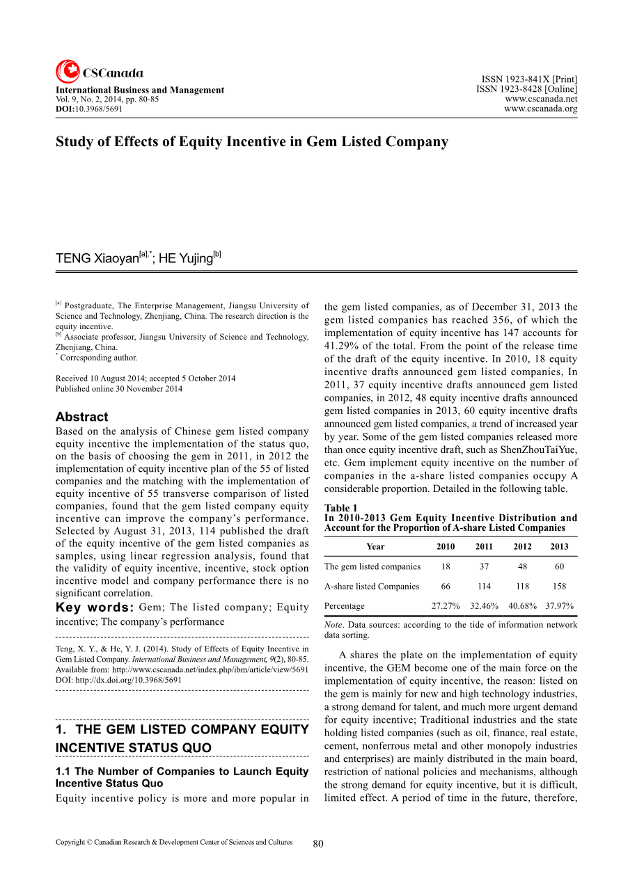 [a]江苏科技大学企业管理研究生,镇江,中国。研究方向是股权激励。
