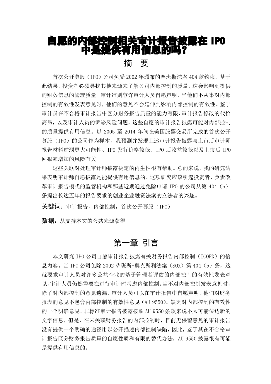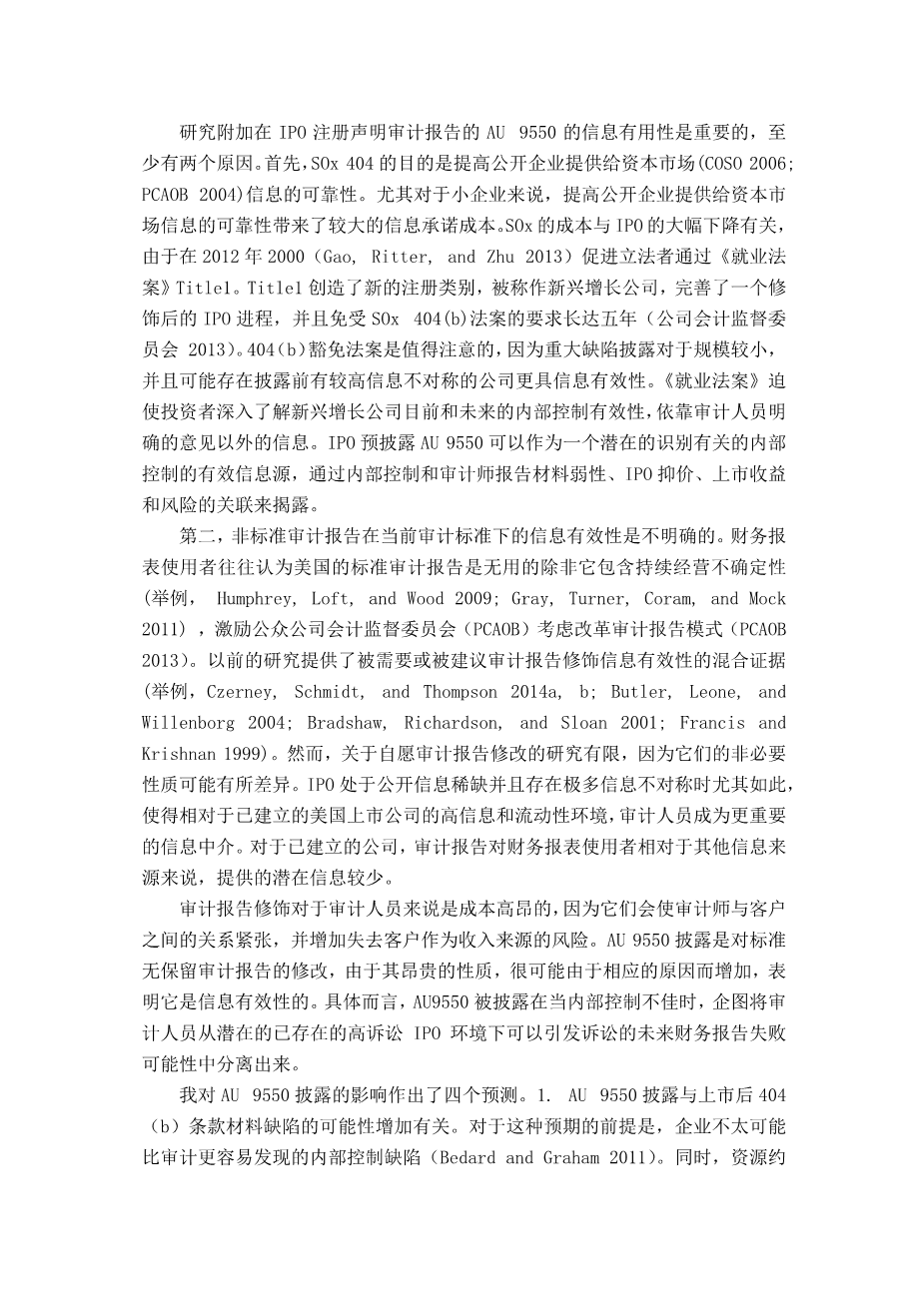 ipo审计风险防范研究——基于K公司的案例研究外文翻译资料 2022-07-18 20:08:07 英语原文共 60 页,剩余内容已隐藏,支付完成后下载完整资料 英语原文共 10 页,剩余内容已隐藏,支付完成后下载完整资料资料编号:[9149],资料为PDF文档或Word文档,PDF文档可免费转换为Word 原文和译文剩余内容已隐藏,您需要先支付 30元 才能查看原文和译文全部内容!立即支付 发小红书推广免费获取该资料资格。点击链接进入获取推广文案即可: Ai一键组稿 | 降AI率 | 降重复率 | 论文一键排版 PREVIOUS NEXT 您可能感兴趣的文章 哈佛分析框架下的企业经营管理分析:以迪斯尼公司为例外文翻译资料 某些财务指标对罗马尼亚能源部门股本回报率的影响——基于Dupont分析的竞争方法外文翻译资料 企业并购中的金融风险控制与规避措施外文翻译资料 马来西亚公司的企业风险管理做法外文翻译资料 伊斯兰金融机制下的中小企业融资困境分析——以苏丹伊斯兰银行为例外文翻译资料 塞尔维亚肉类行业盈利能力分析外文翻译资料 现金流量表与企业价值:来自台湾的证据外文翻译资料 企业价值最大化视角下的财务风险控制与防范研究外文翻译资料 财务报表舞弊的原因、后果及防范外文翻译资料 澳大利亚借壳上市:探索性分析外文翻译资料
