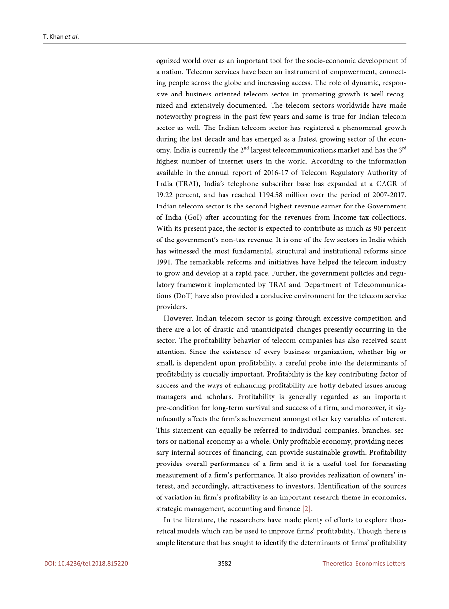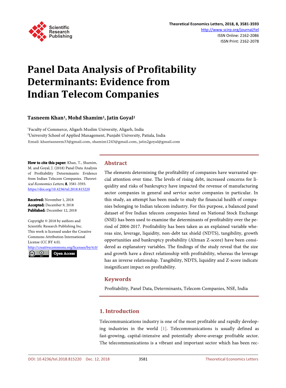 关键词:盈利能力;面板数据;决定因素;电信公司;国家证券交易所;印度