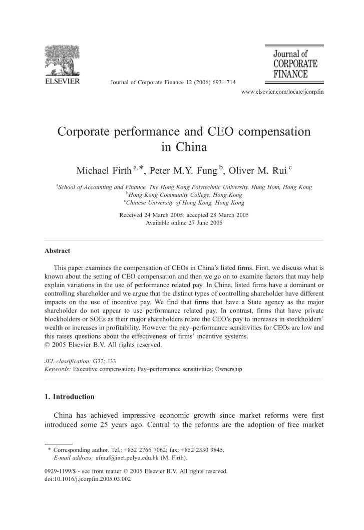 中国的公司业绩和CEO薪酬外文翻译资料 2022-08-14 14:03:41 英语原文共 22 页,剩余内容已隐藏,支付完成后下载完整资料 英语译文共 17 页,剩余内容已隐藏,支付完成后下载完整资料 资料编号:[235807],资料为PDF文档或Word文档,PDF文档可免费转换为Word 原文和译文剩余内容已隐藏,您需要先支付 30元 才能查看原文和译文全部内容!立即支付 发小红书推广免费获取该资料资格。点击链接进入获取推广文案即可: Ai一键组稿 | 降AI率 | 降重复率 | 论文一键排版 PREVIOUS NEXT 您可能感兴趣的文章 哈佛分析框架下的企业经营管理分析:以迪斯尼公司为例外文翻译资料 某些财务指标对罗马尼亚能源部门股本回报率的影响——基于Dupont分析的竞争方法外文翻译资料 企业并购中的金融风险控制与规避措施外文翻译资料 马来西亚公司的企业风险管理做法外文翻译资料 伊斯兰金融机制下的中小企业融资困境分析——以苏丹伊斯兰银行为例外文翻译资料 塞尔维亚肉类行业盈利能力分析外文翻译资料 现金流量表与企业价值:来自台湾的证据外文翻译资料 企业价值最大化视角下的财务风险控制与防范研究外文翻译资料 财务报表舞弊的原因、后果及防范外文翻译资料 澳大利亚借壳上市:探索性分析外文翻译资料
