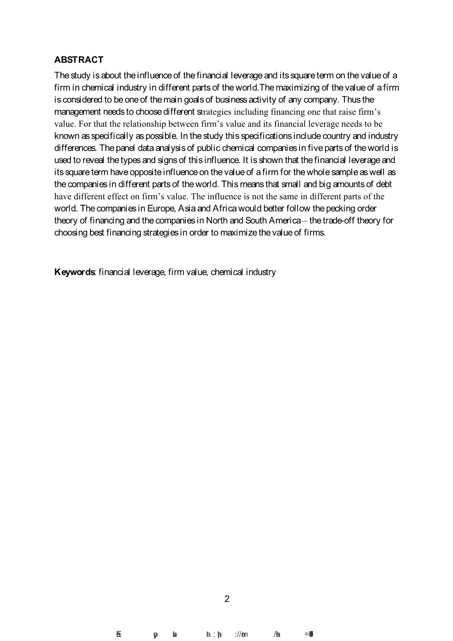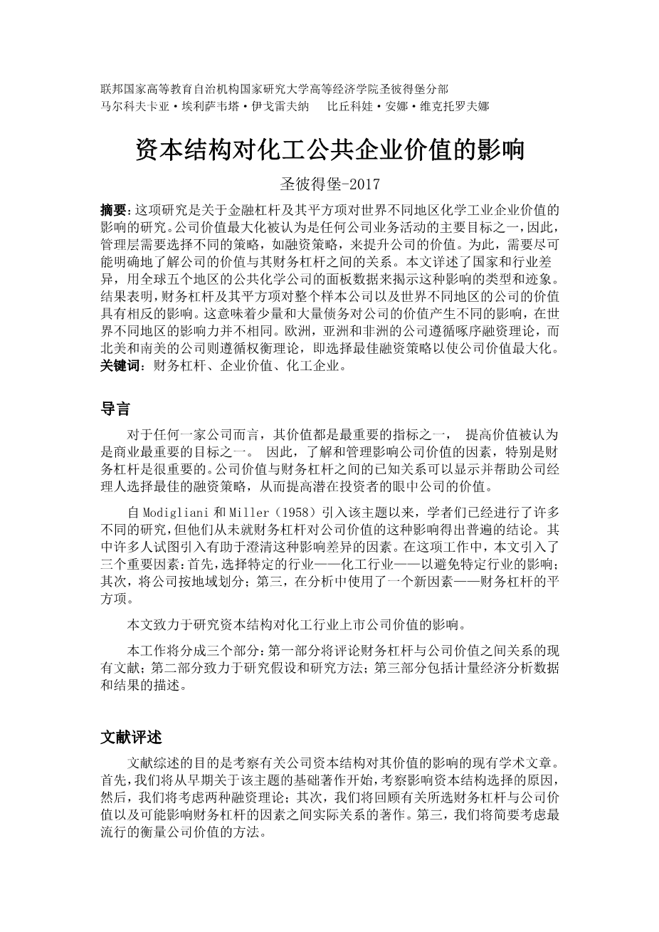 资本结构对化工公共企业价值的影响外文翻译资料 2022-08-14 14:32:48 英语原文共 29 页,剩余内容已隐藏,支付完成后下载完整资料 英语译文共 14 页,剩余内容已隐藏,支付完成后下载完整资料 资料编号:[235596],资料为PDF文档或Word文档,PDF文档可免费转换为Word 原文和译文剩余内容已隐藏,您需要先支付 30元 才能查看原文和译文全部内容!立即支付 发小红书推广免费获取该资料资格。点击链接进入获取推广文案即可: Ai一键组稿 | 降AI率 | 降重复率 | 论文一键排版 PREVIOUS NEXT 您可能感兴趣的文章 哈佛分析框架下的企业经营管理分析:以迪斯尼公司为例外文翻译资料 某些财务指标对罗马尼亚能源部门股本回报率的影响——基于Dupont分析的竞争方法外文翻译资料 企业并购中的金融风险控制与规避措施外文翻译资料 马来西亚公司的企业风险管理做法外文翻译资料 伊斯兰金融机制下的中小企业融资困境分析——以苏丹伊斯兰银行为例外文翻译资料 塞尔维亚肉类行业盈利能力分析外文翻译资料 现金流量表与企业价值:来自台湾的证据外文翻译资料 企业价值最大化视角下的财务风险控制与防范研究外文翻译资料 财务报表舞弊的原因、后果及防范外文翻译资料 澳大利亚借壳上市:探索性分析外文翻译资料