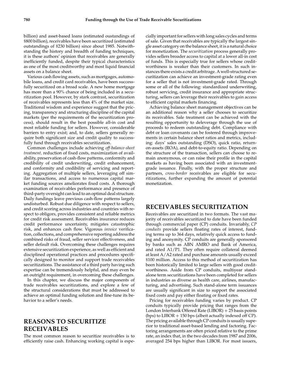 根据各种估计,反映在美国公司财务报表中的应收账款总额约为6万亿美元。为了便于讨论,我们将只把应收款项称为“应收账款”,把产生应收账款的公司称为“卖方”,我们只处理商业应收账款(也称为贸易应收账款),而不处理消费者应收账款。各种形式的应收账款融资已经存在了几个世纪。除了较老的保理方法(估计为850亿美元)和基于资产的贷款(估计为8000亿美元)之外,应收账款自1985年以来已被证券化(估计为2300亿美元)。尽管融资技术历史悠久,但这些作者认为,尽管应收账款是资产负债表上最具信用价值和流动性最强的金融资产之一,但它们的融资效率普遍较低。