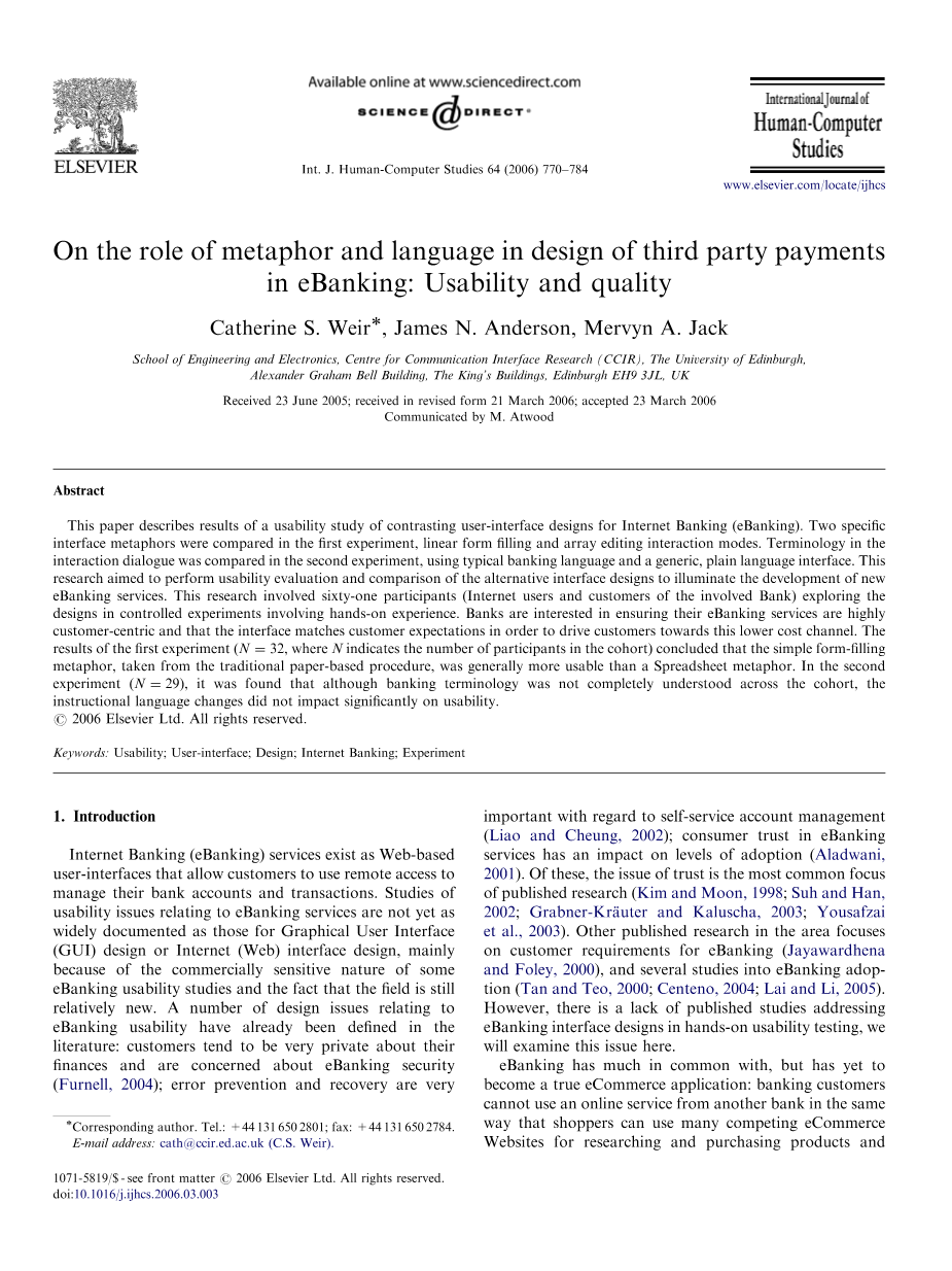 在隐喻与语言在网银第三方支付设计的作用:可用性和质量外文翻译资料