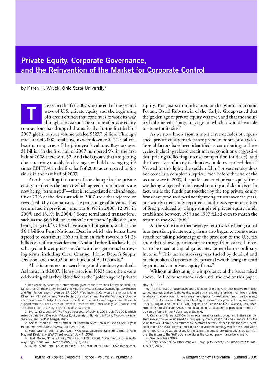 Private Equity, Corporate Governance, and the Reinvention of the Market for Corporate Control