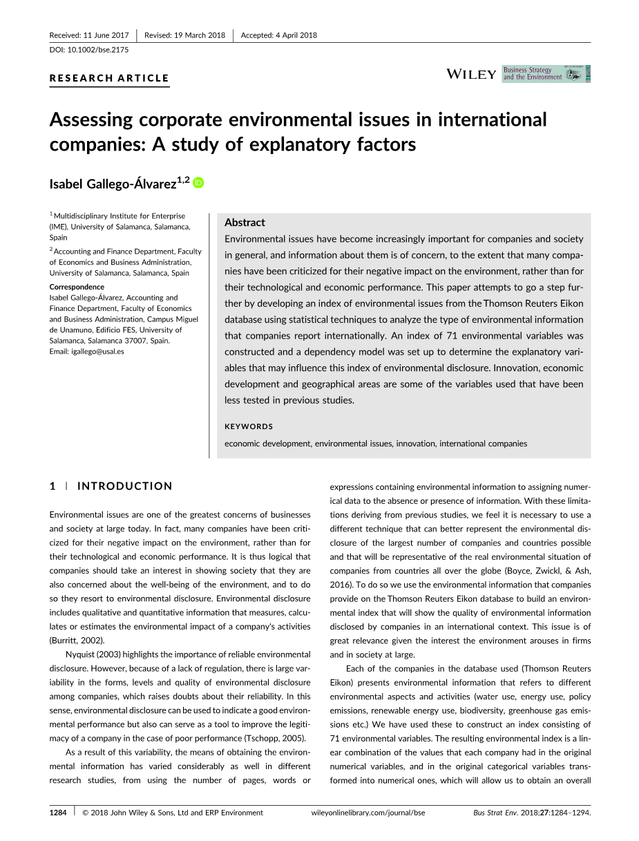 环境问题是当今企业和社会最关心的问题之一。事实上,很多公司因为对环境的负面影响而受到批评,而不是因为他们的技术和经济表现。因此,合乎逻辑的是,企业应该对向社会表明他们也关心环境的福祉感兴趣,并为此诉诸环境披露。环境披露包括定性和定量信息,用以衡量、计算或估计公司活动的环境影响(Burritt, 2002)。