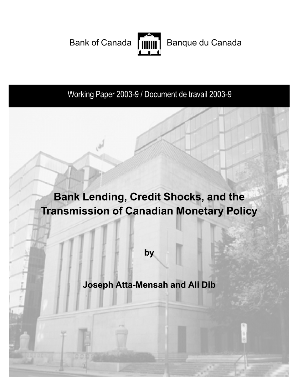 银行借贷,信用冲击与加拿大国内的货币政策传导机制研究外文翻译资料
