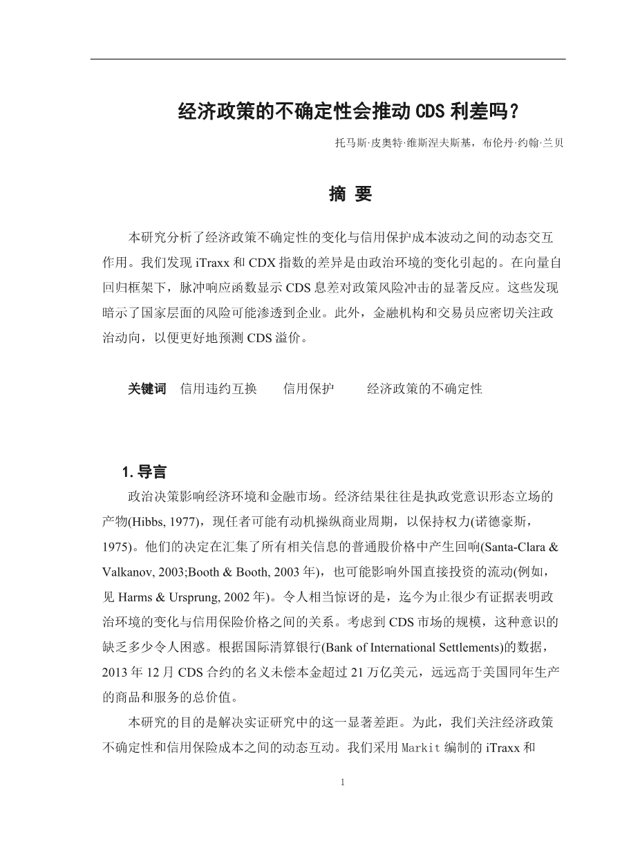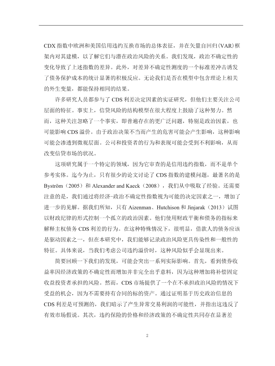 经济政策的不确定性会推动CDS利差吗?外文翻译资料 2023-06-28 11:54:06 英语原文共 12 页,剩余内容已隐藏,支付完成后下载完整资料 英语译文共 30 页,剩余内容已隐藏,支付完成后下载完整资料 资料编号:[603140],资料为PDF文档或Word文档,PDF文档可免费转换为Word 原文和译文剩余内容已隐藏,您需要先支付 30元 才能查看原文和译文全部内容!立即支付 发小红书推广免费获取该资料资格。点击链接进入获取推广文案即可: Ai一键组稿 | 降AI率 | 降重复率 | 论文一键排版 PREVIOUS NEXT 您可能感兴趣的文章 哈佛分析框架下的企业经营管理分析:以迪斯尼公司为例外文翻译资料 某些财务指标对罗马尼亚能源部门股本回报率的影响——基于Dupont分析的竞争方法外文翻译资料 企业并购中的金融风险控制与规避措施外文翻译资料 马来西亚公司的企业风险管理做法外文翻译资料 伊斯兰金融机制下的中小企业融资困境分析——以苏丹伊斯兰银行为例外文翻译资料 塞尔维亚肉类行业盈利能力分析外文翻译资料 现金流量表与企业价值:来自台湾的证据外文翻译资料 企业价值最大化视角下的财务风险控制与防范研究外文翻译资料 财务报表舞弊的原因、后果及防范外文翻译资料 澳大利亚借壳上市:探索性分析外文翻译资料