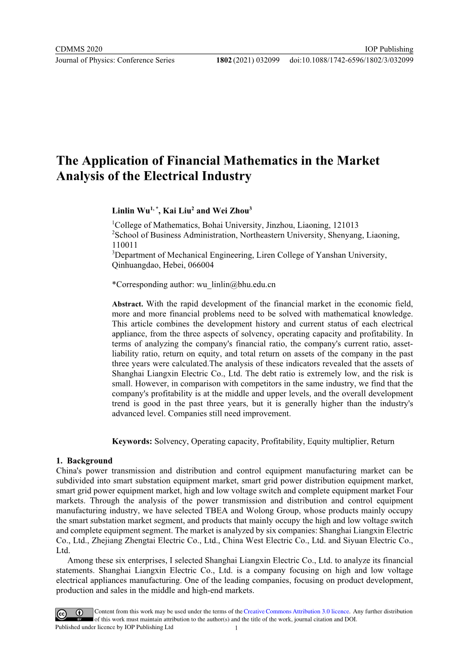 金融数学在电气行业市场分析中的应用外文翻译资料