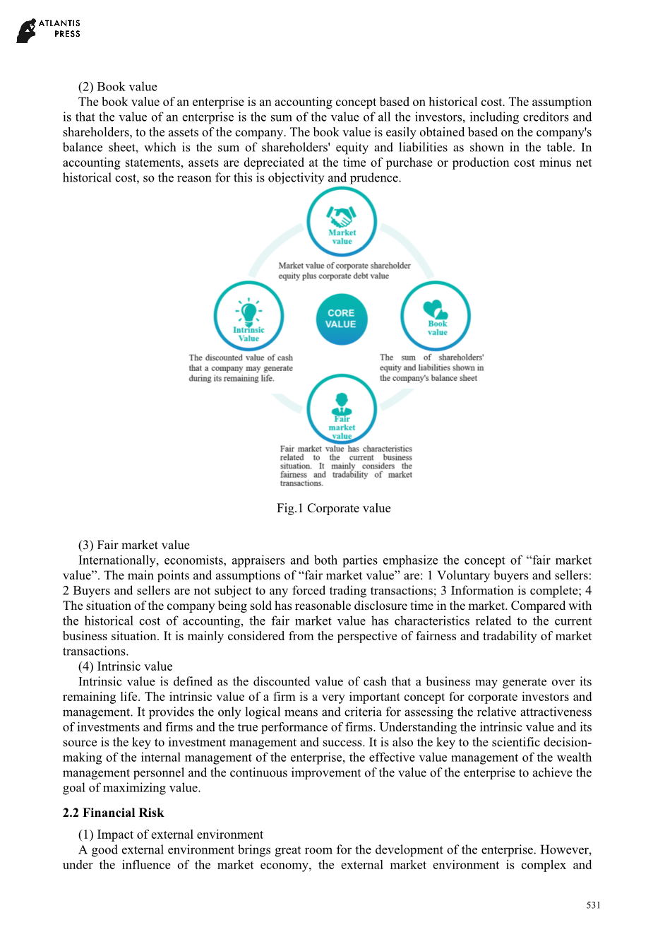 在国际上,经济学家、评估师和双方都强调“公平市场价值”的概念。“公平市场价值”的要点和假设是:1、买卖双方自愿:2、买卖双方不受任何强迫交易的约束;3资料齐全;被出售公司的情况在市场上有合理的披露时间。与历史成本会计相比,公允市场价值具有与当前经营状况相关的特征。它主要是从市场交易的公平性和可交易性的角度来考虑的。
