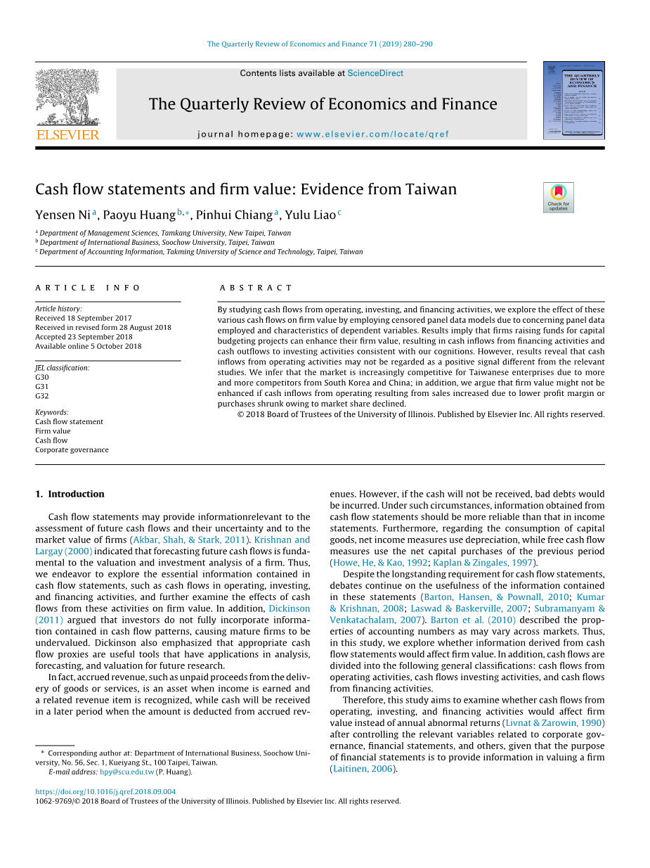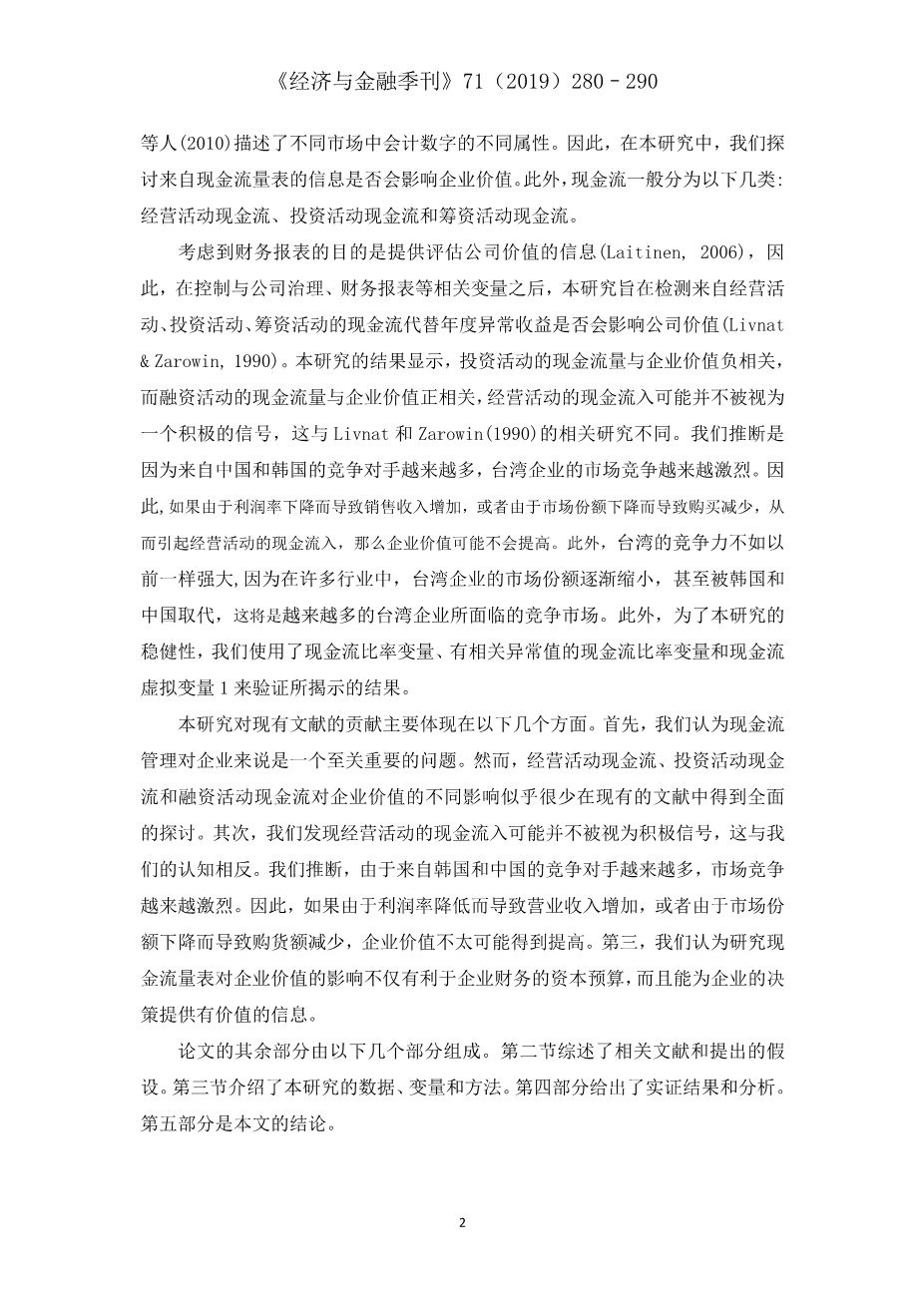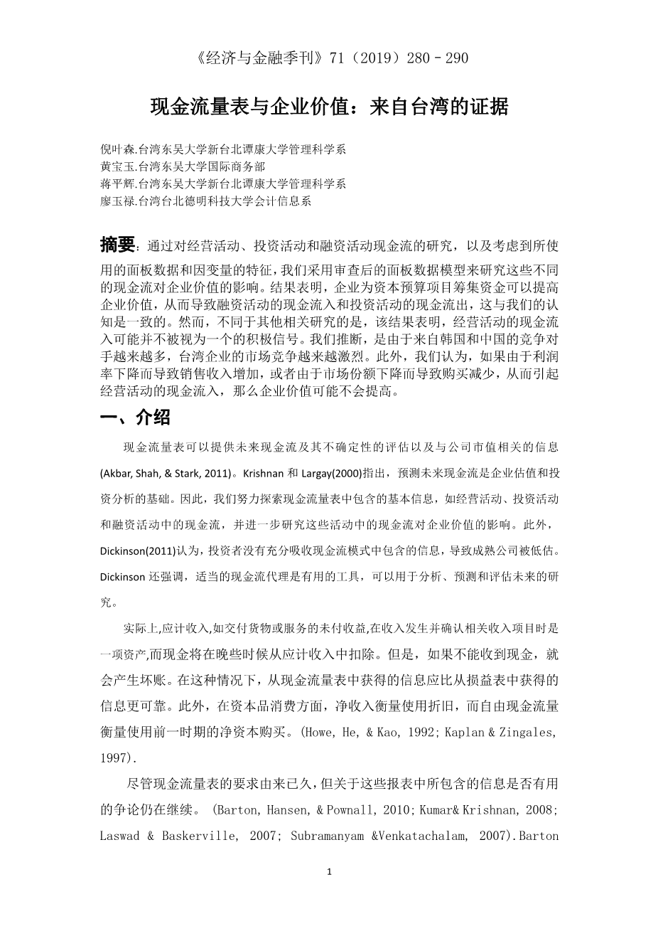 现金流量表与企业价值:来自台湾的证据外文翻译资料 2023-08-29 09:37:18 英语原文共 11 页,剩余内容已隐藏,支付完成后下载完整资料 英语译文共 9 页,剩余内容已隐藏,支付完成后下载完整资料 资料编号:[607487],资料为PDF文档或Word文档,PDF文档可免费转换为Word 原文和译文剩余内容已隐藏,您需要先支付 30元 才能查看原文和译文全部内容!立即支付 发小红书推广免费获取该资料资格。点击链接进入获取推广文案即可: Ai一键组稿 | 降AI率 | 降重复率 | 论文一键排版 PREVIOUS NEXT 您可能感兴趣的文章 哈佛分析框架下的企业经营管理分析:以迪斯尼公司为例外文翻译资料 某些财务指标对罗马尼亚能源部门股本回报率的影响——基于Dupont分析的竞争方法外文翻译资料 企业并购中的金融风险控制与规避措施外文翻译资料 马来西亚公司的企业风险管理做法外文翻译资料 伊斯兰金融机制下的中小企业融资困境分析——以苏丹伊斯兰银行为例外文翻译资料 塞尔维亚肉类行业盈利能力分析外文翻译资料 现金流量表与企业价值:来自台湾的证据外文翻译资料 企业价值最大化视角下的财务风险控制与防范研究外文翻译资料 财务报表舞弊的原因、后果及防范外文翻译资料 澳大利亚借壳上市:探索性分析外文翻译资料