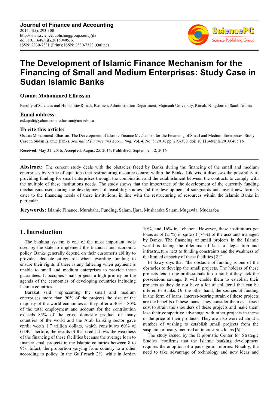 结果表明,54%的融资被批准从2005年到2013年期间,商业银行是由穆拉巴哈指挥其余的由有46%。计算结果证实了文中公式的正确性资助模式是Murabaha。(5).伊斯兰国家与伊斯兰国家协商一致的筹资方式中小企业融资伊斯兰金融是以羊的参与为基础的因此Balgrm是基于实际资产的。它不区分项目的大小。因此,它使对中小企业的融资来说更容易接受企业摆脱了传统的融资方式。