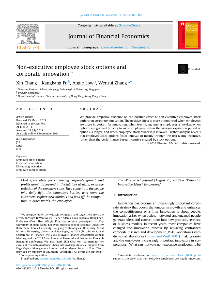 创新已成为一个日益重要的企业战略,可以促进企业的长期增长和竞争力的提高。创新是关于人的。当人们积极地构思想法并将其转化为新的产品、服务或商业模式时,创新就产生了。近年来,大多数公司已经改变了创新过程,用事业部实验室取代了集中的企业研发(Ramp;D)实验室(Lerner and Wulf, 2007),使得普通员工在公司内部成为越来越重要的创新者。但是什么能激励非管理员工更具创新性?在这篇论文中,我们研究了股票期权——员工薪酬的一个关键组成部分——在让普通员工参与创新活动中的作用。我们证明了非管理员工股票期权对企业创新具有积极的激励作用。