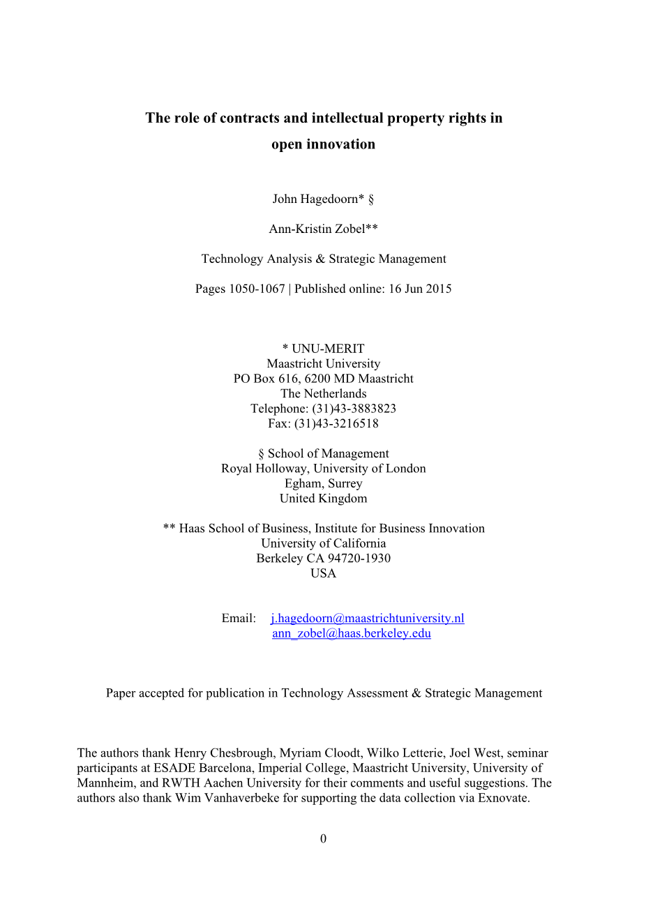 合同和知识产权 在开放式创新中的作用外文翻译资料