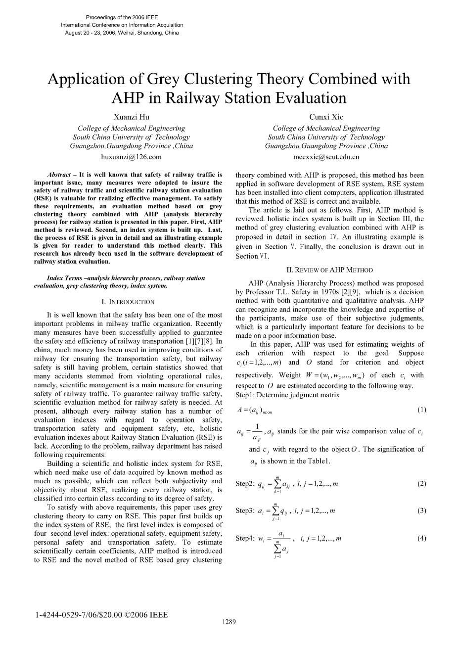 索引词:层次分析法,火车站评价,灰色聚类理论,指标体系