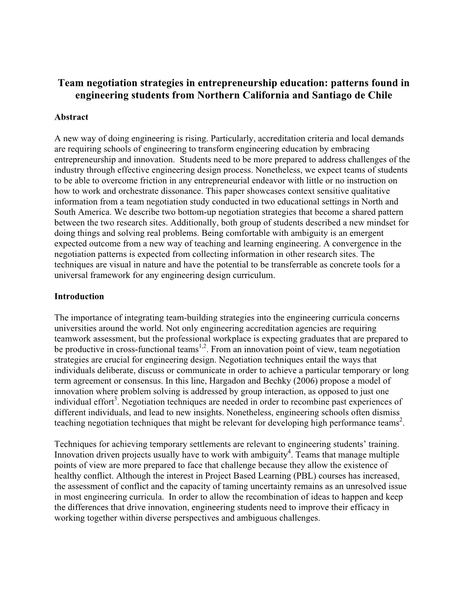 创业教育中的团队协商策略:来自北加州和智利圣地亚哥的工程学学生发现的模式