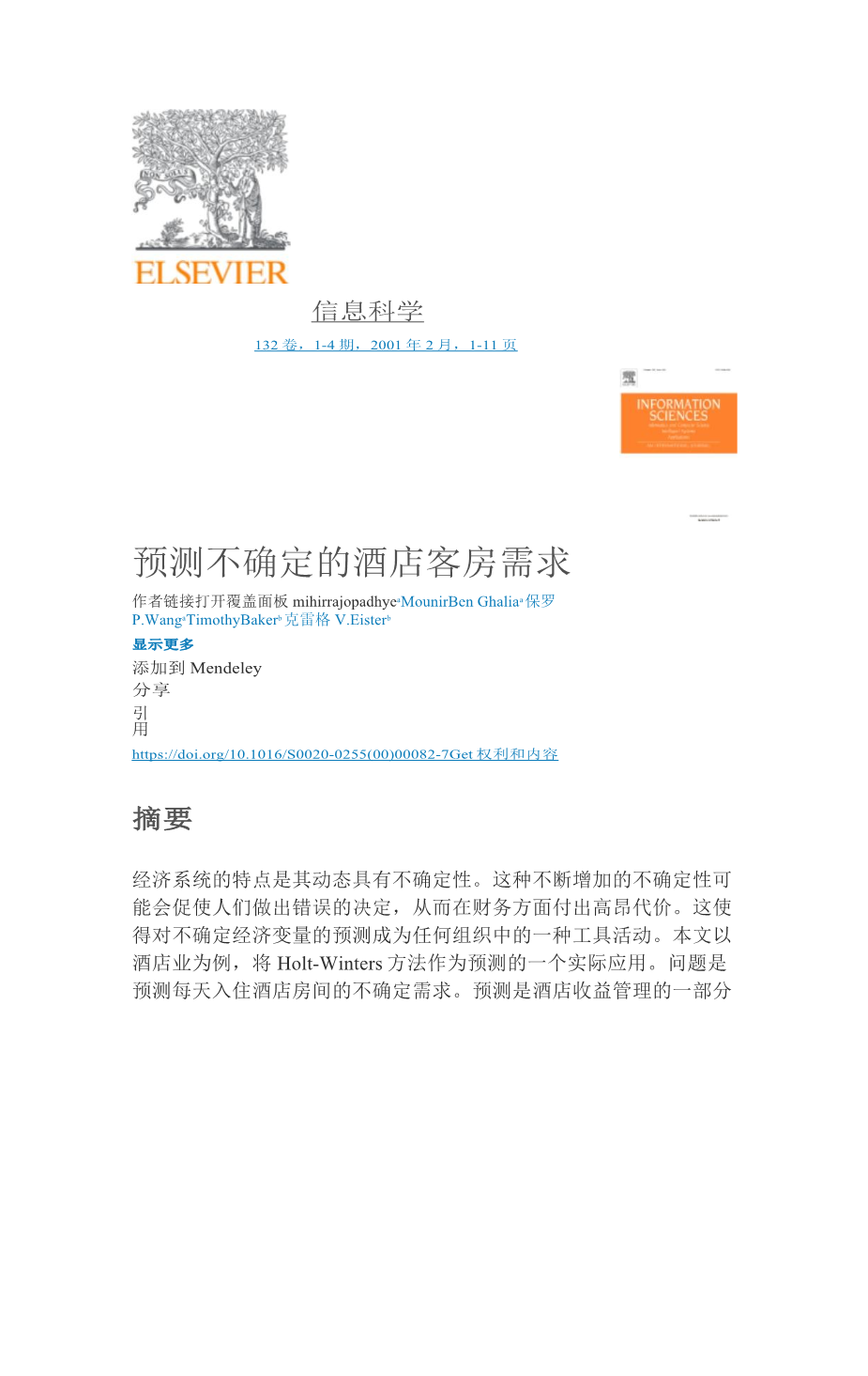 - 探索离职意向的影响因素:以豪华酒店员工为例外文翻译资料