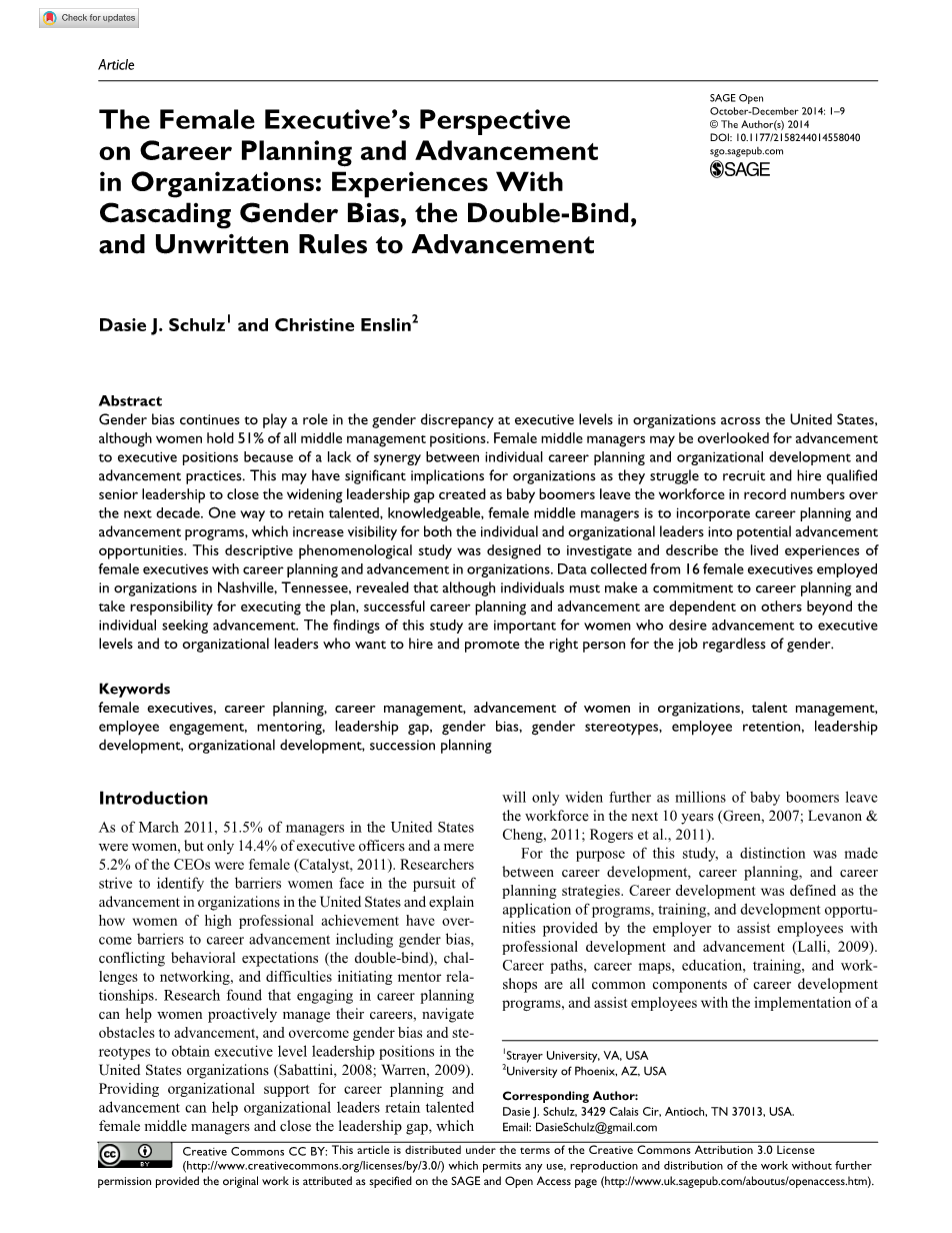 组织中女性高管职业生涯规划与晋升的视角:连锁性别偏见的经验,双重束缚,和不成文的晋升规则