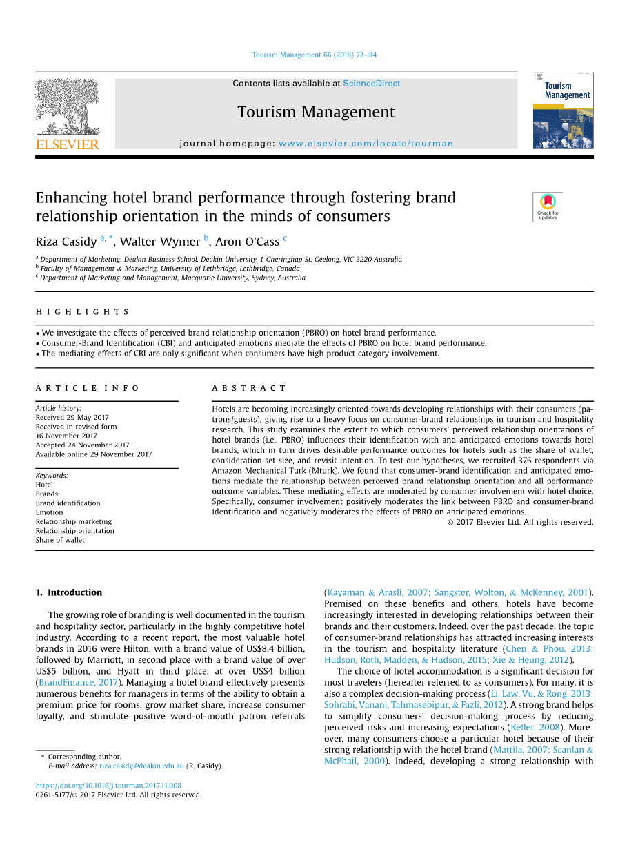 H2 与酒店的消费者品牌识别可以调解酒店的PBRO与其(a)钱包份额,(b)重新访问意